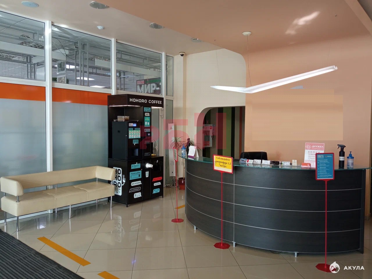 Возможность размещение вывески на входе в здание и дополнительное месте на рекламной стойке.