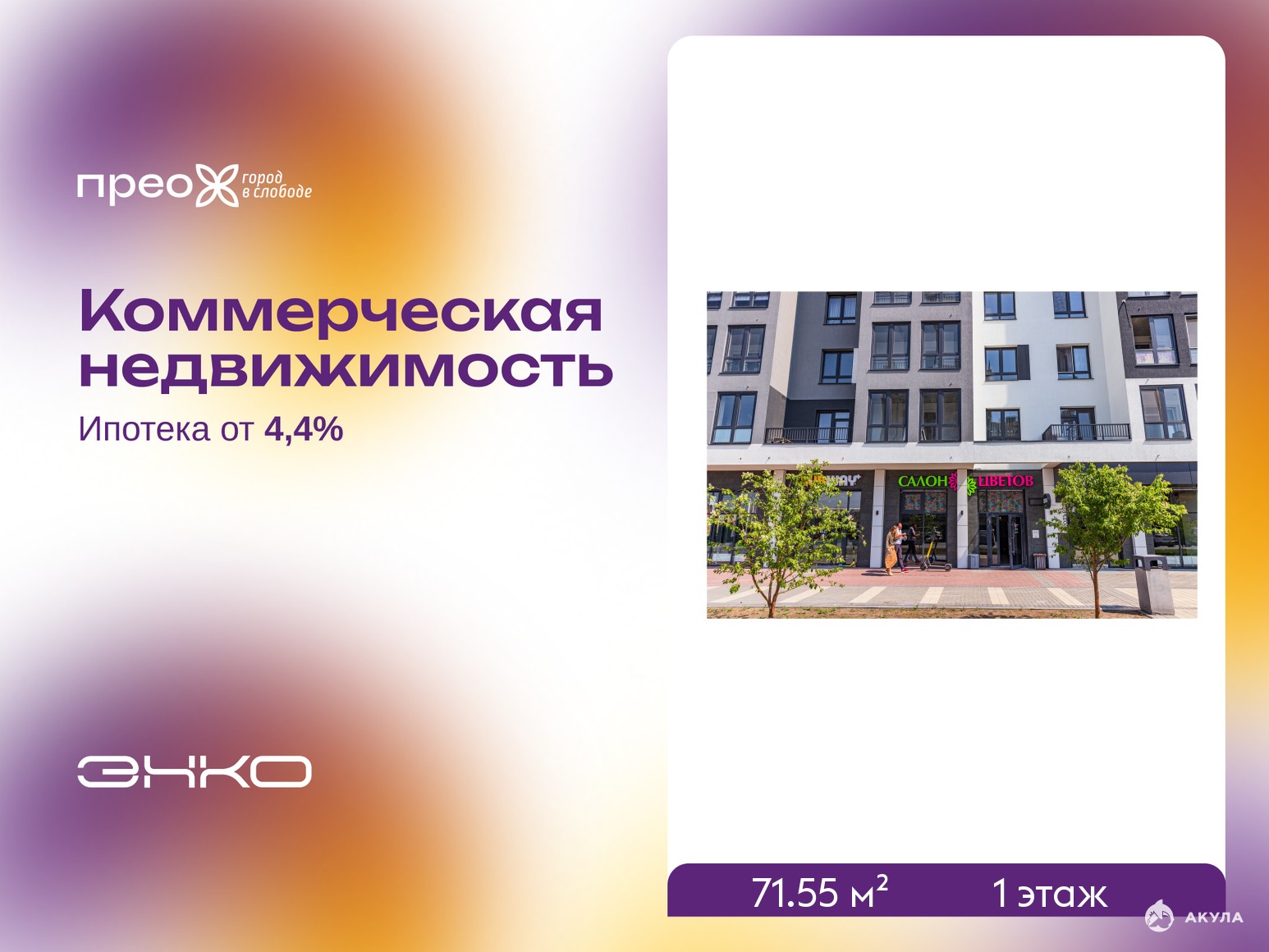 Помещение свободного назначения на 1 этаже, общая площадь 71.55 кв.м. Стоимость аренды 178, 875 руб. в месяц, это 2500 руб. за кв.м.