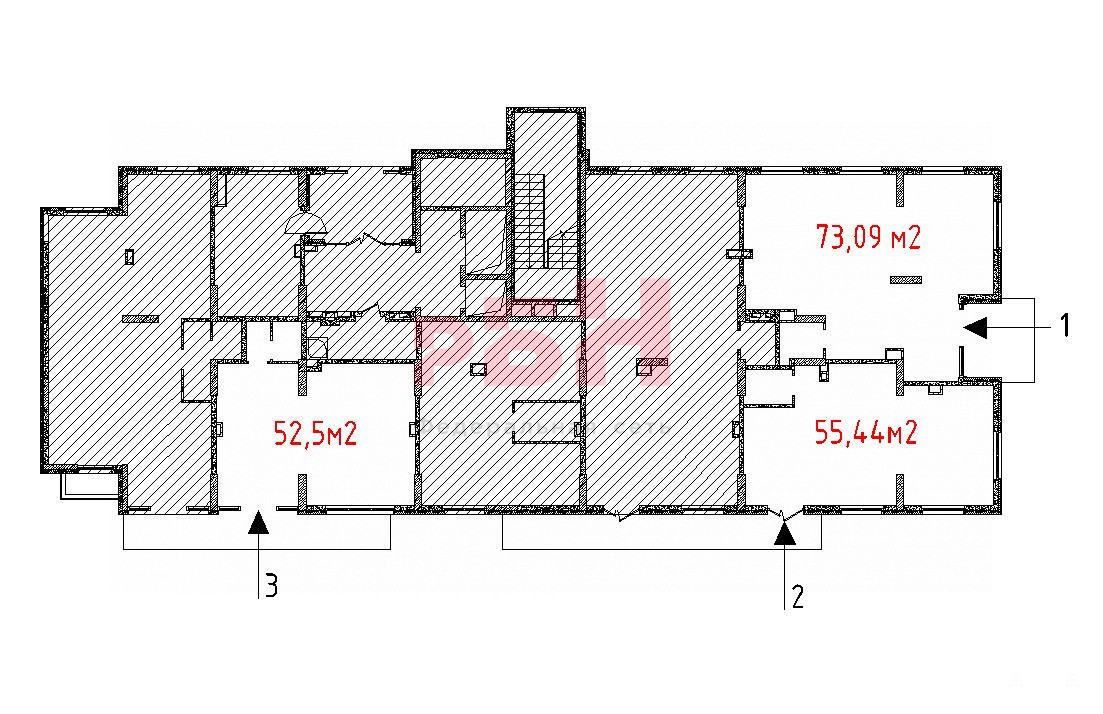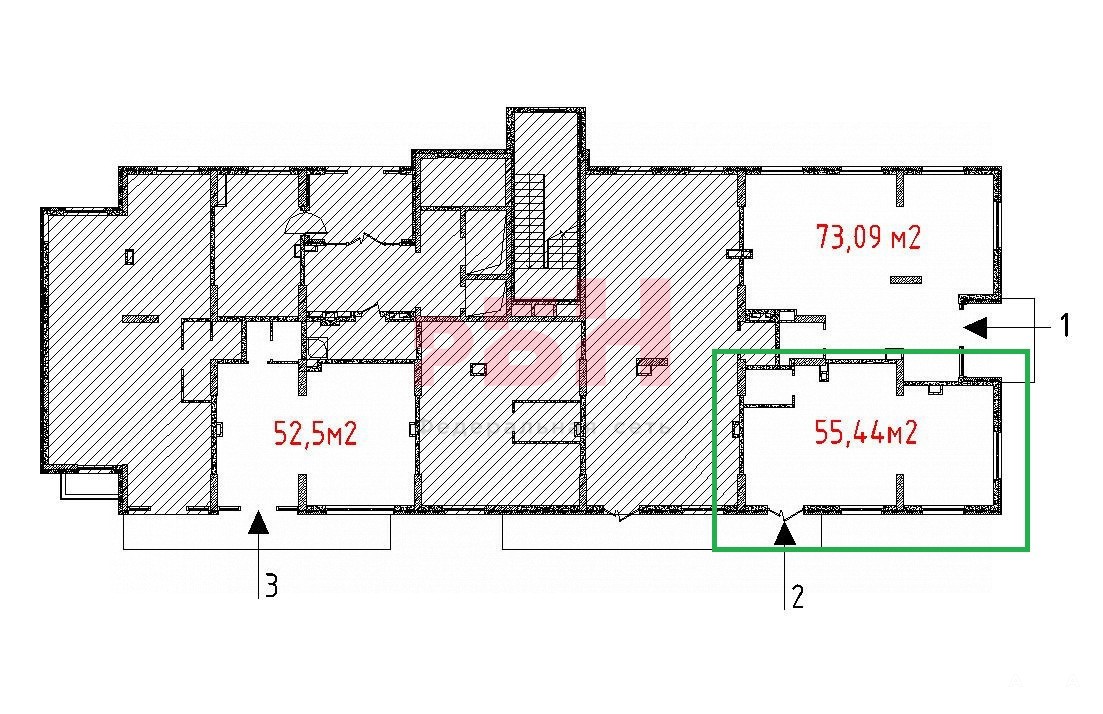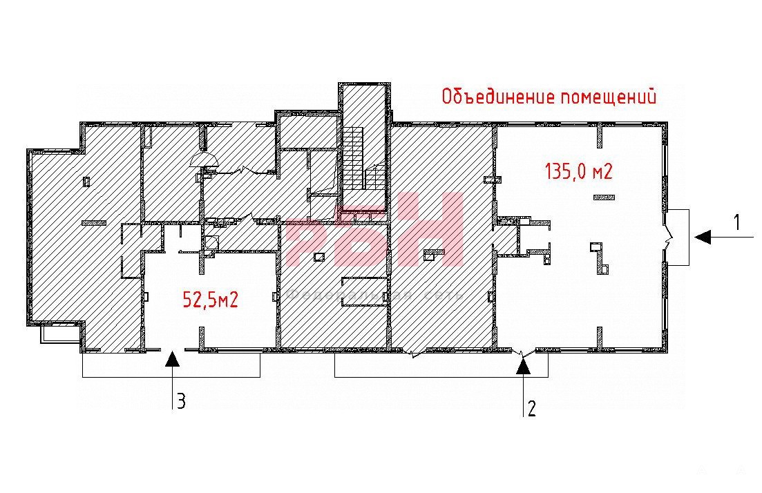 Есть возможность объединить с соседним помещением (71, 8кв.м + 55, 44кв.м)