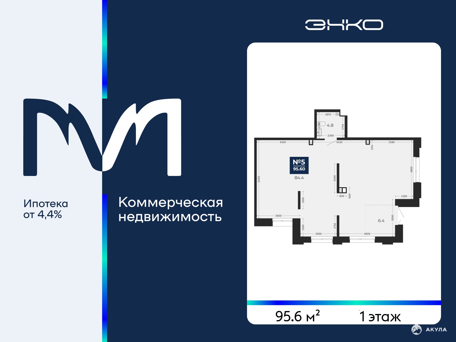 Помещение свободного назначения на 1 этаже, общая площадь 95.6 кв.м. Стоимость аренды 95, 600 руб. в месяц, это 1000 руб. за кв.м.