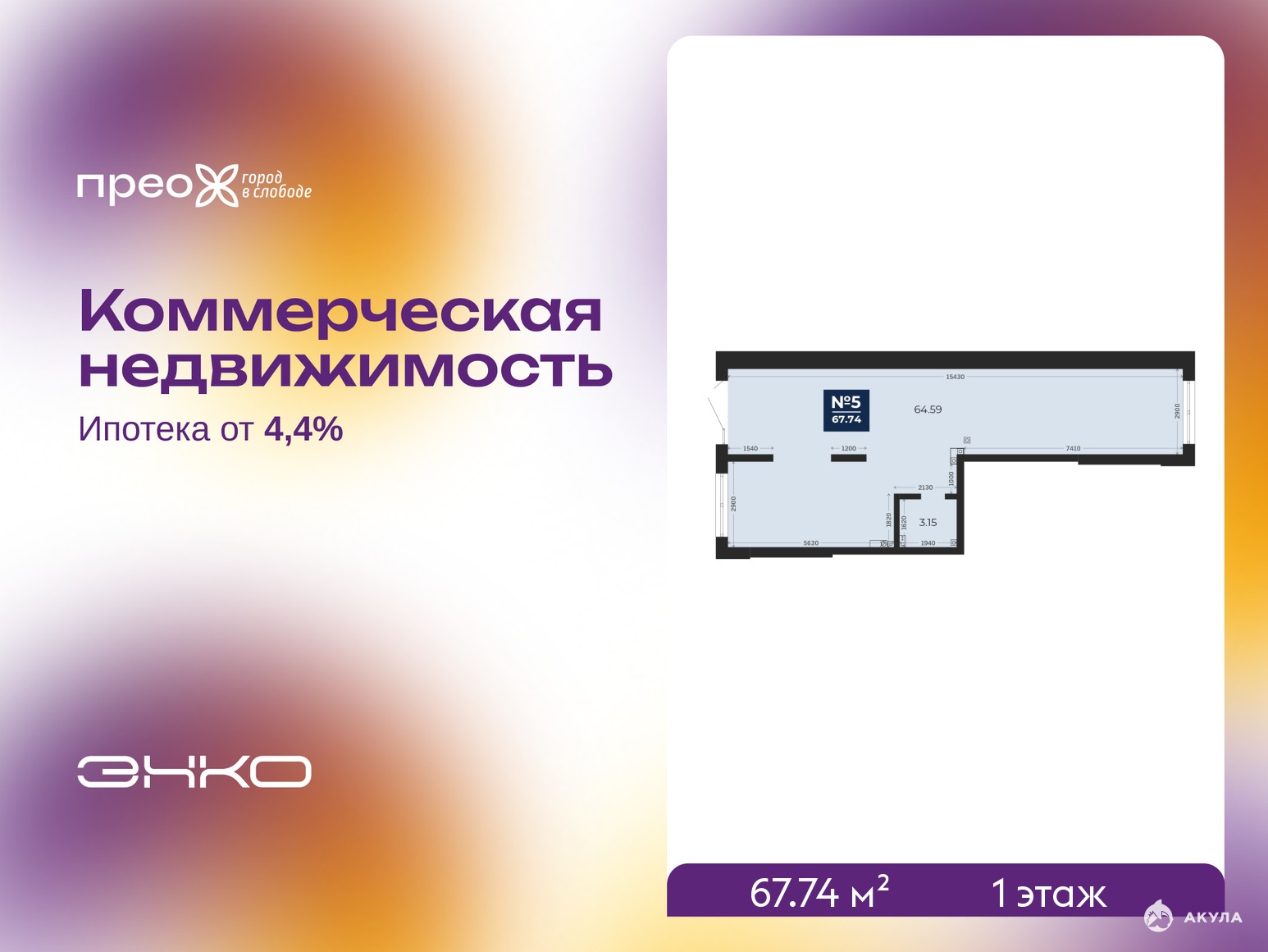 Помещение свободного назначения на 1 этаже, общая площадь 67.74 кв.м. Стоимость помещения 20, 740, 000 руб., цена за кв.м 306, 170 руб.