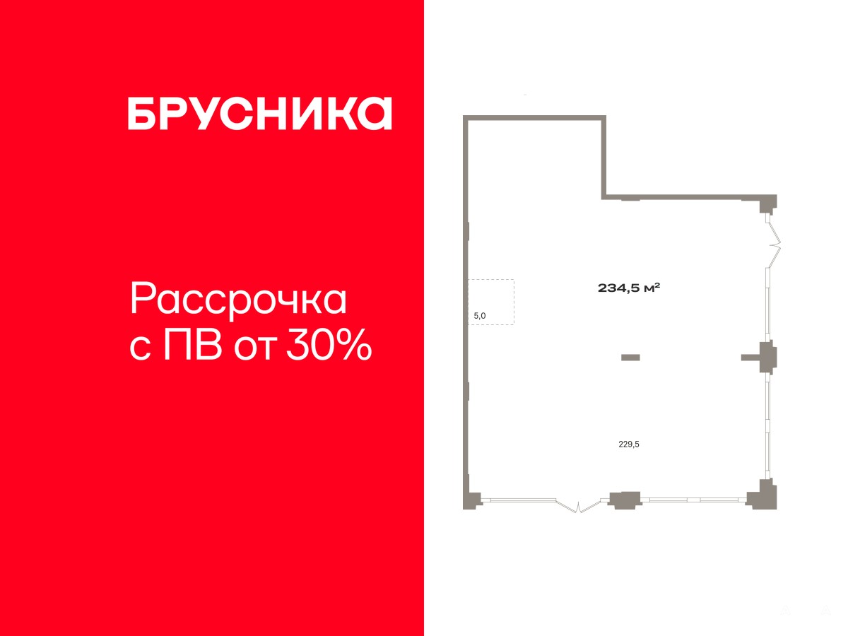 Помещение свободного назначения на 1 этаже, общая площадь 234.5 кв.м., без отделки. Стоимость помещения 69, 510, 000 руб., цена за кв.м 296, 417 руб.