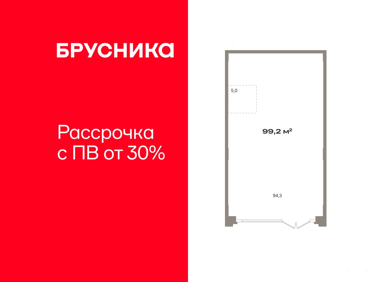 Помещение свободного назначения на 1 этаже, общая площадь 99.2 кв.м., без отделки. Стоимость помещения 30, 720, 000 руб., цена за кв.м 309, 677 руб.