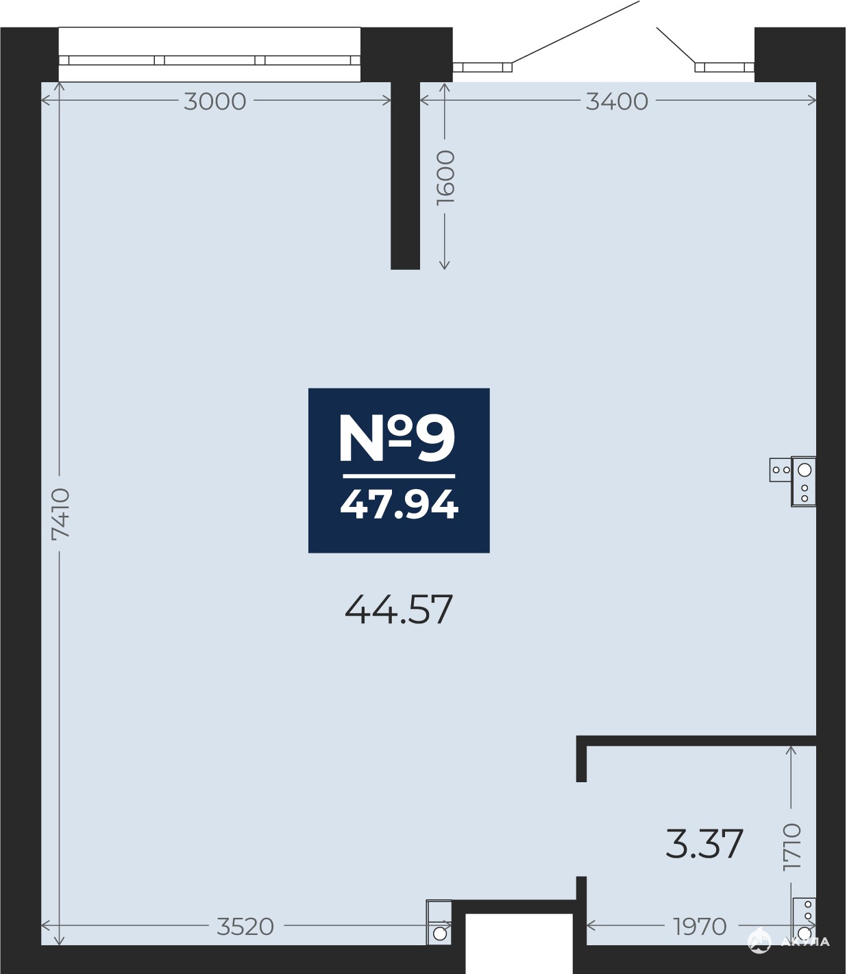 Помещение свободного назначения на 1 этаже, общая площадь 47.94 кв.м., без отделки. Стоимость помещения 9, 450, 000 руб., цена за кв.м 197, 121 руб.