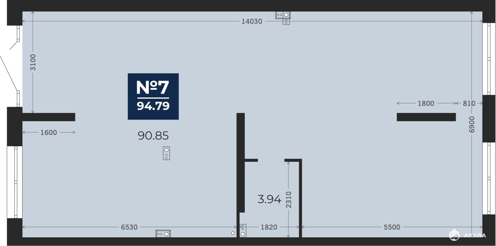 Помещение свободного назначения на 1 этаже, общая площадь 94.79 кв.м., без отделки. Стоимость помещения 17, 270, 000 руб., цена за кв.м 182, 192 руб.