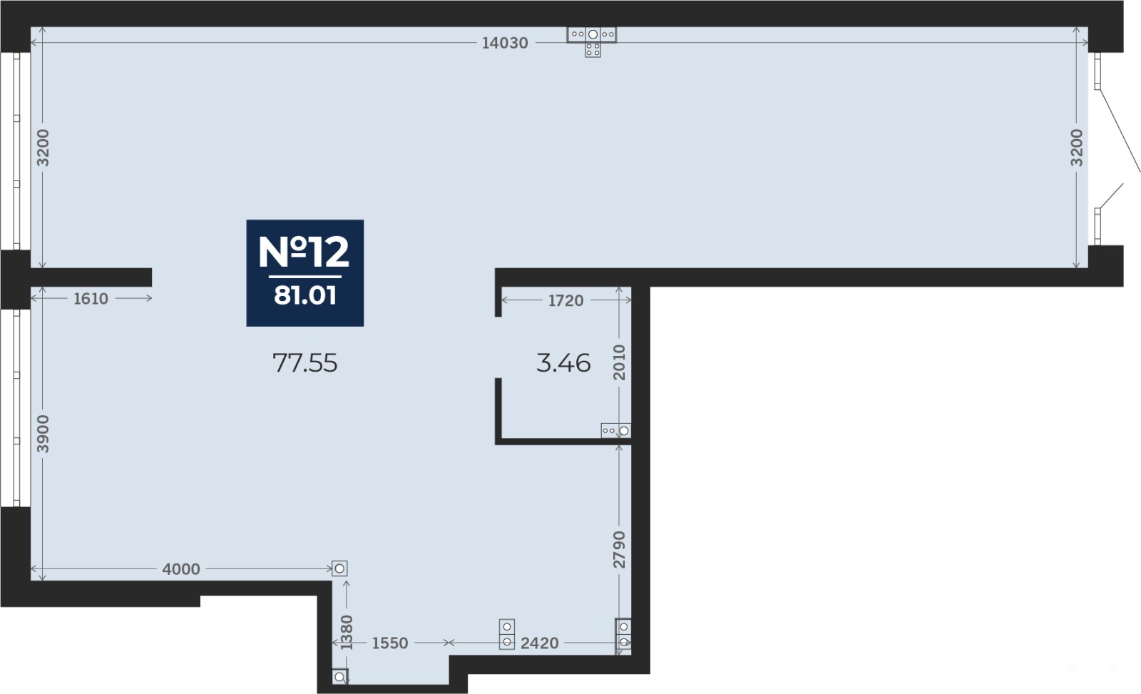 Помещение свободного назначения на 1 этаже, общая площадь 81.01 кв.м., без отделки. Стоимость помещения 13, 280, 000 руб., цена за кв.м 163, 930 руб.