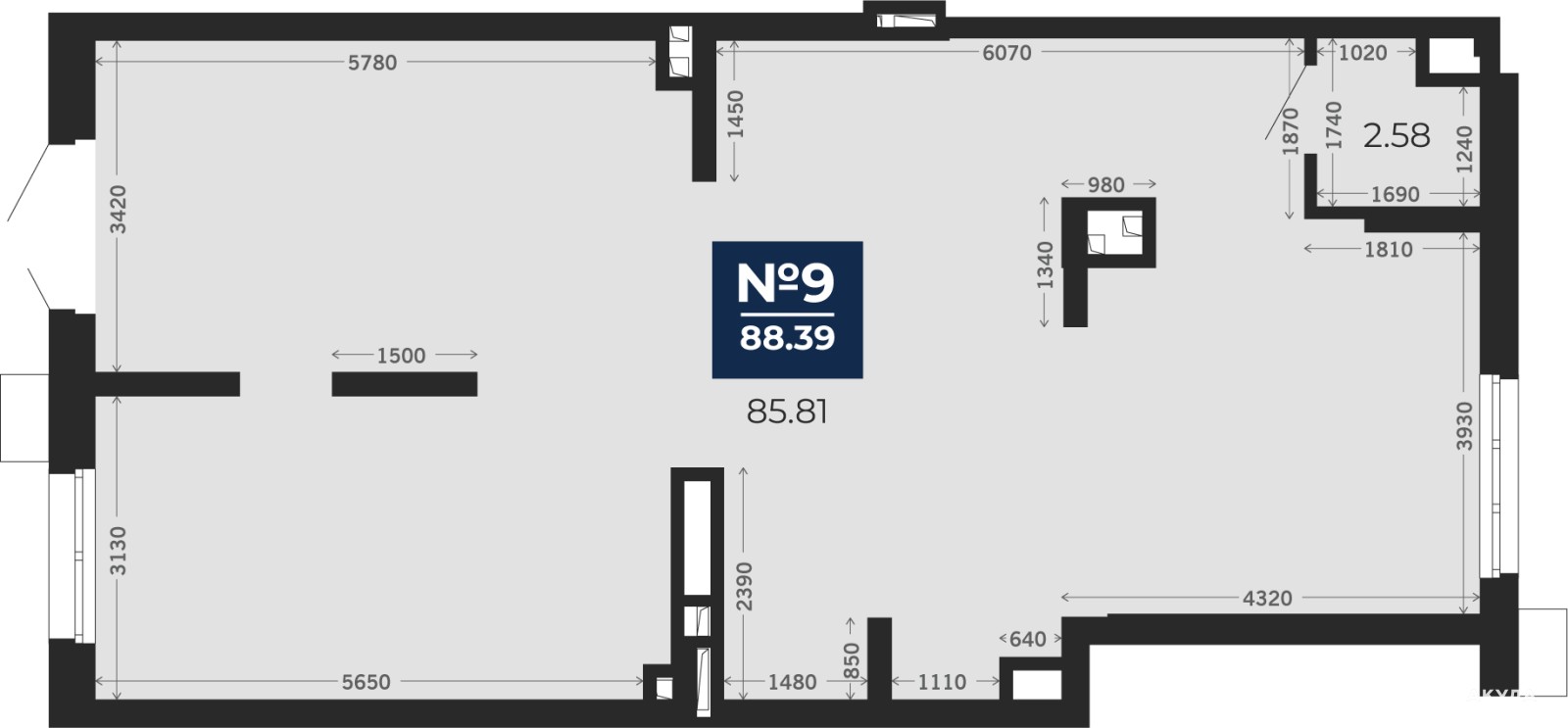 Помещение свободного назначения на 1 этаже, общая площадь 88.39 кв.м. Стоимость помещения 16, 620, 000 руб., цена за кв.м 188, 030 руб.