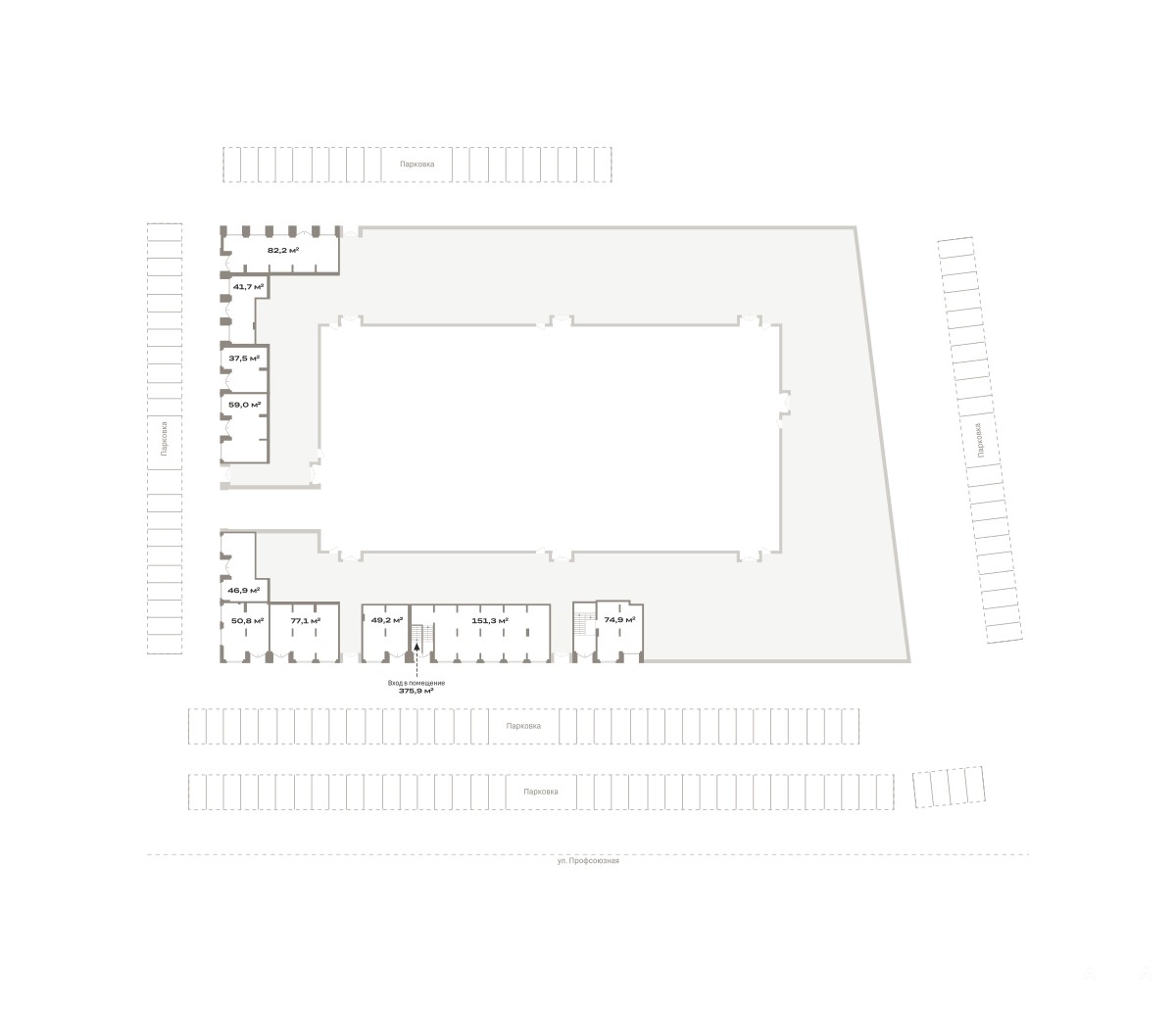 помещении спроектирован отдельный вход и высокие потолки. Рядом предусмотрены гостевые парковки, зоны погрузки и разгрузки. Для ритейла применяется витражное остекление.