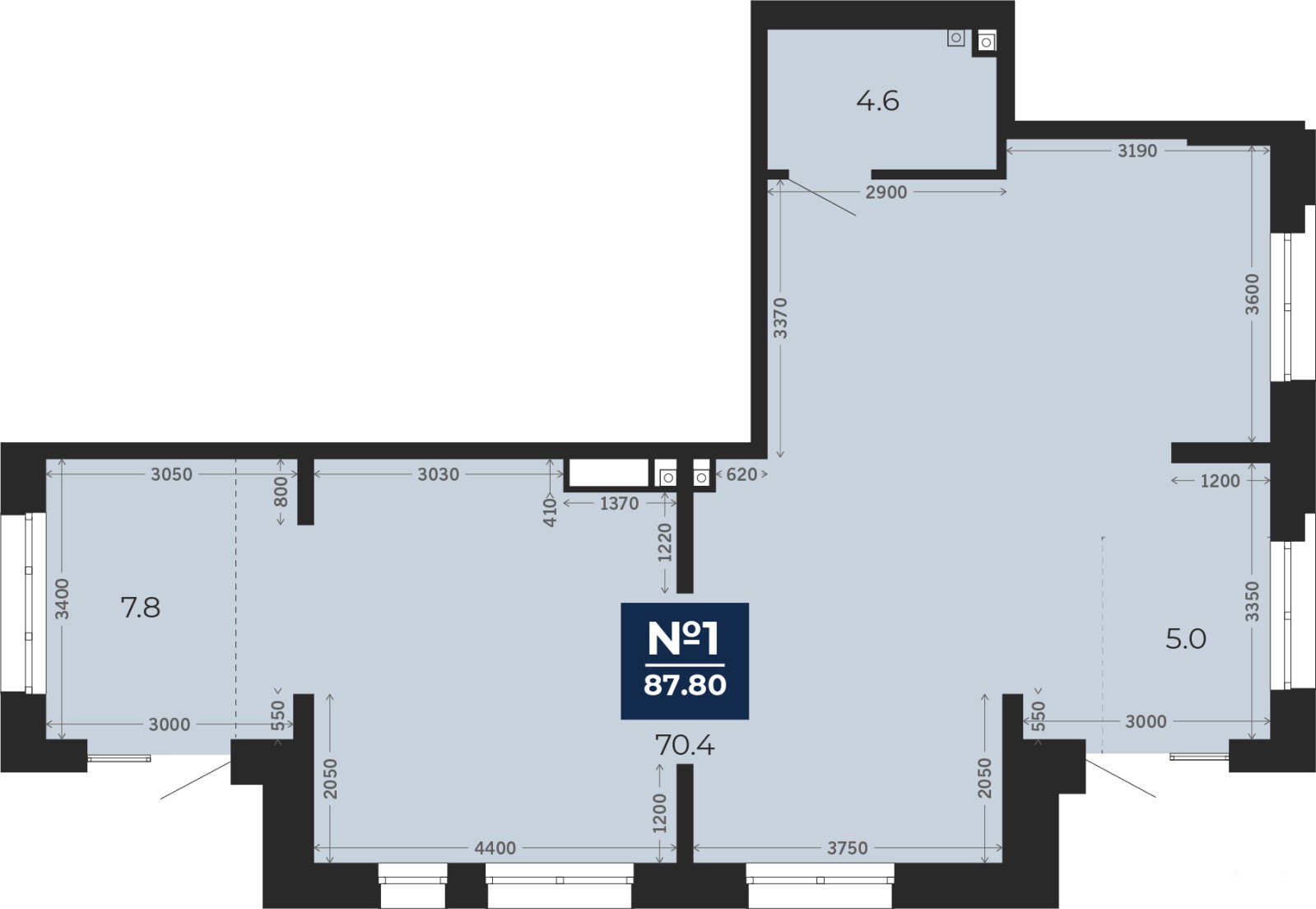 Помещение свободного назначения на 1 этаже, общая площадь 87.8 кв.м., без отделки. Стоимость помещения 17, 550, 000 руб., цена за кв.м 199, 886 руб.