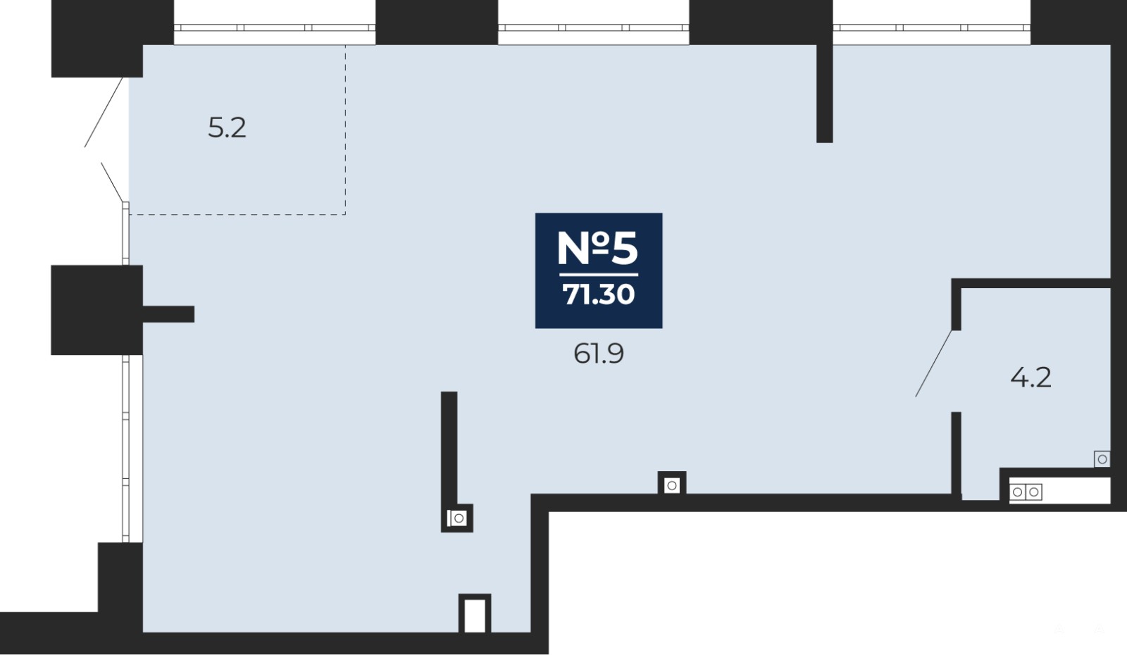 Помещение свободного назначения на 1 этаже, общая площадь 71.3 кв.м., без отделки. Стоимость помещения 15, 453, 000 руб., цена за кв.м 216, 732 руб.
