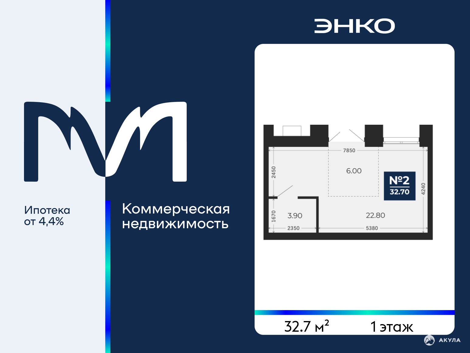 Помещение свободного назначения на 1 этаже, общая площадь 32.7 кв.м. Стоимость помещения 8, 870, 000 руб., цена за кв.м 271, 253 руб.