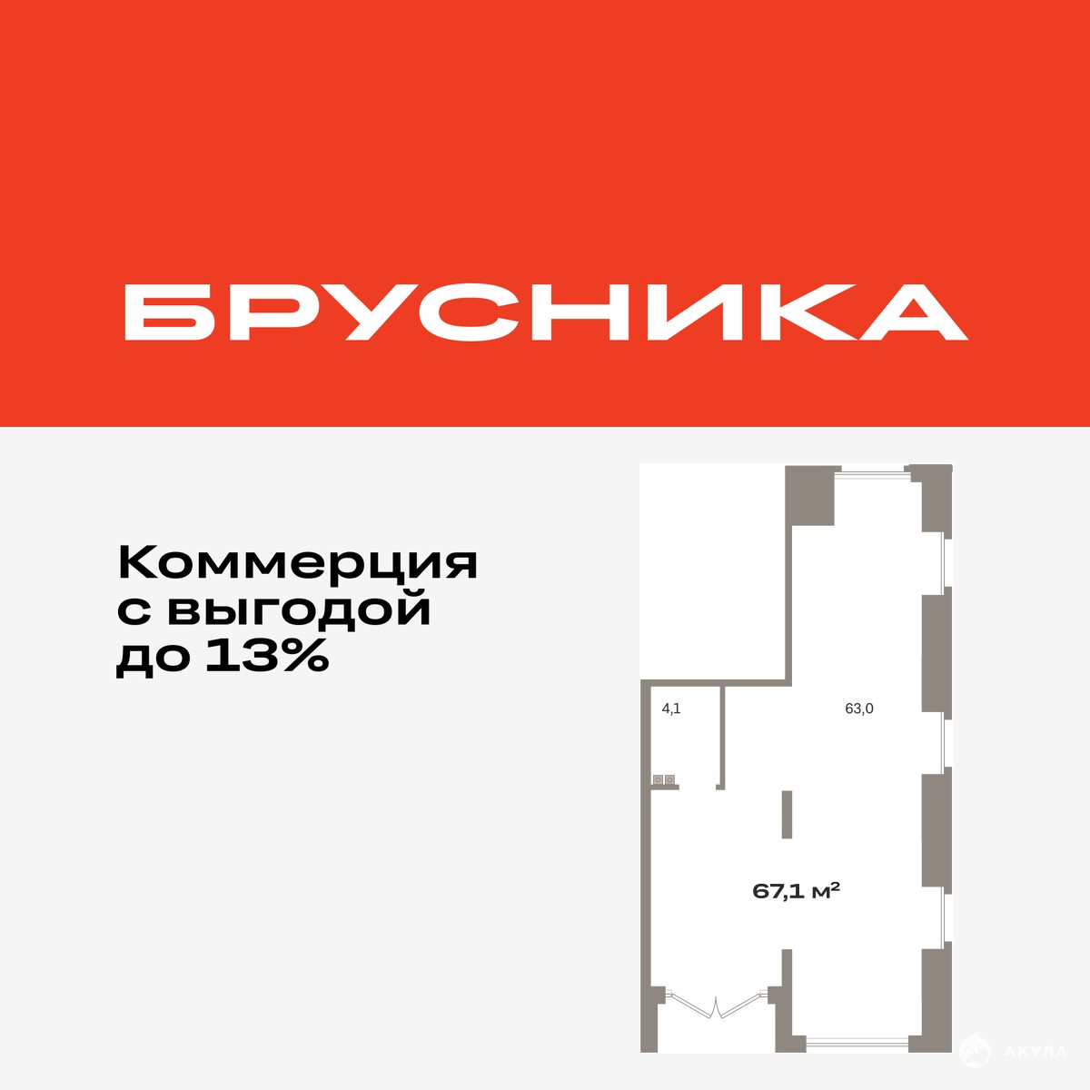 Помещение свободного назначения на 1 этаже, общая площадь 67.06 кв.м., без отделки. Стоимость помещения 13, 870, 000 руб., цена за кв.м 206, 829 руб.