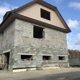 Двухэтажный коттедж, размеры по периметру двенадцать на двенадцать метров. Керамзитоблок М - 75 (экоплит), облицовочный кирпич Брылино. Фундамент: буронабивные сваи, 41штука, 4 метра, плюс ленточный фундамент, плюс два ряда блоки ФБС, армопояс, гидроизоляция. Утеплитель -...