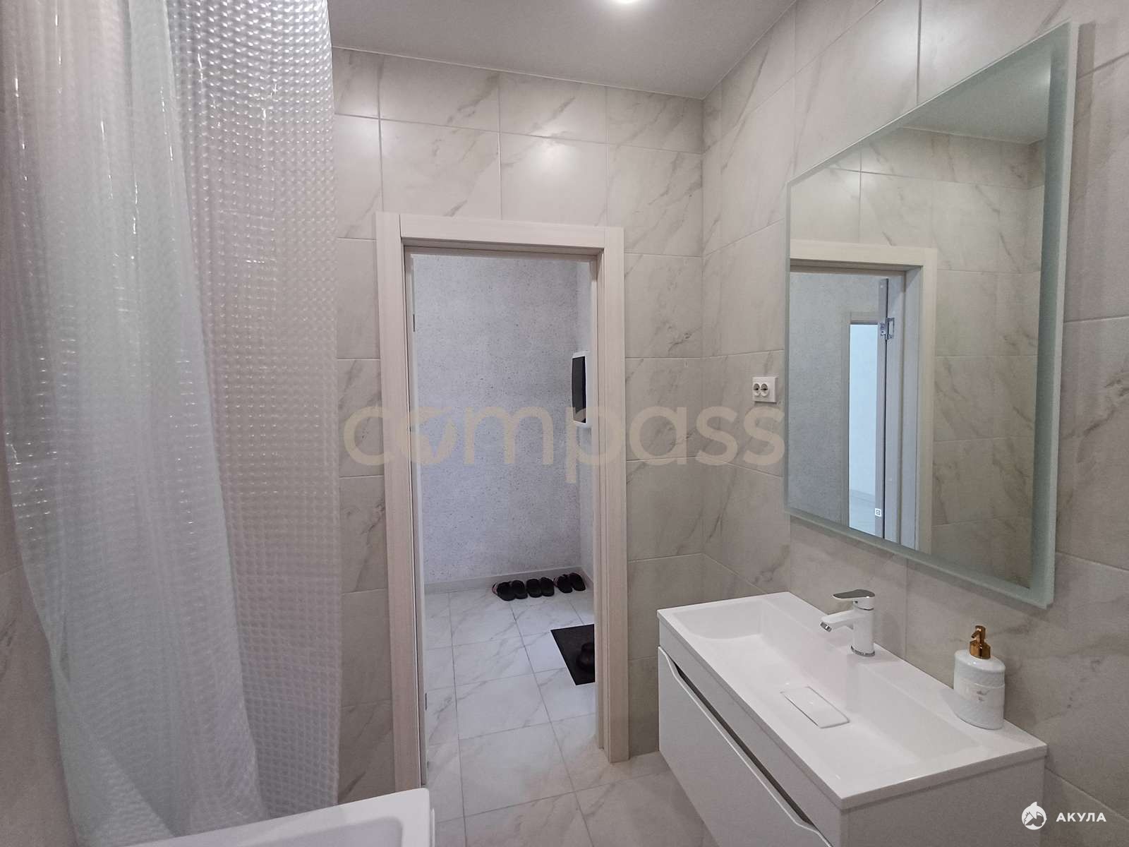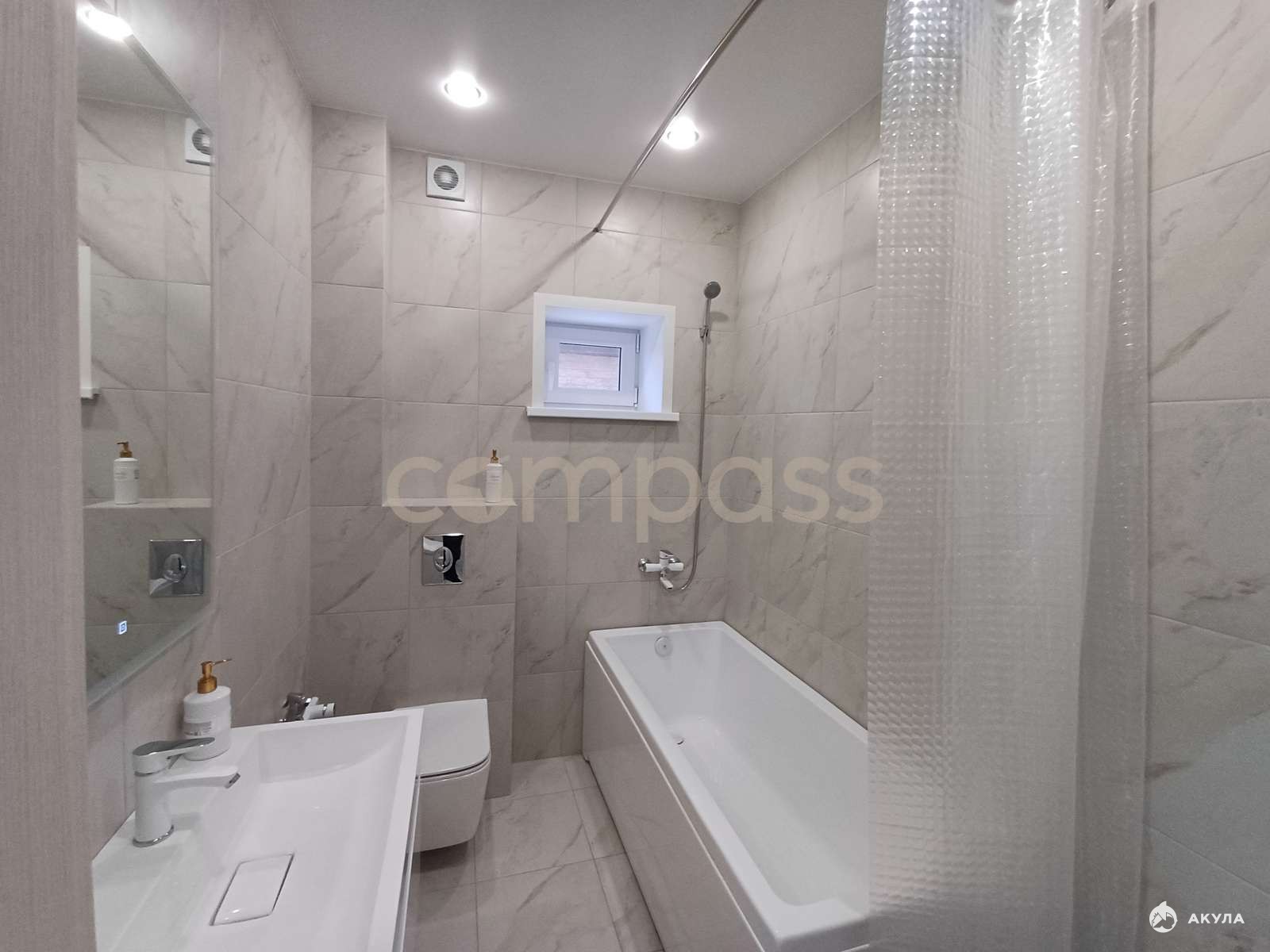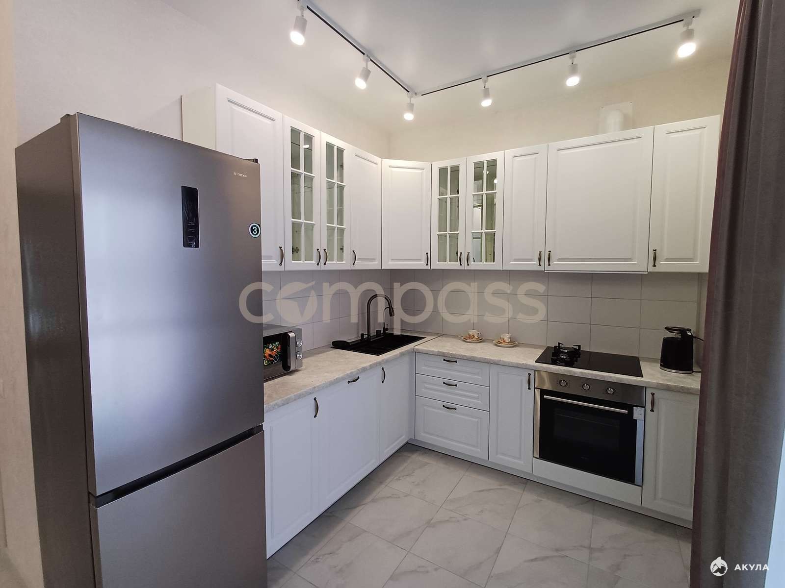 Выполнен качественный ремонт из дорогих материалов: обои в современном стиле, напольная плитка - керамогранит, натяжные потолки с точечными светильниками, межкомнатные двери, кухонный гарнитур с мягкой мебелью