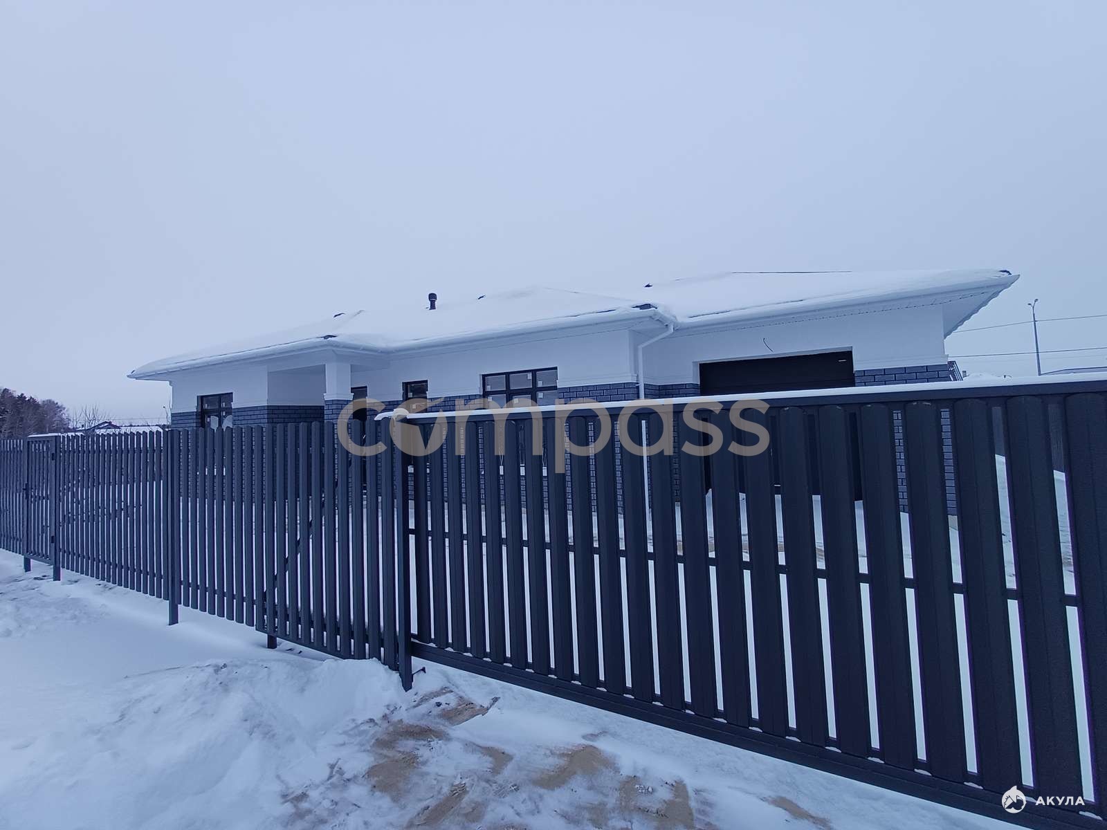 По периметру участок огорожен забором из профнастила с откатными воротами и калиткой