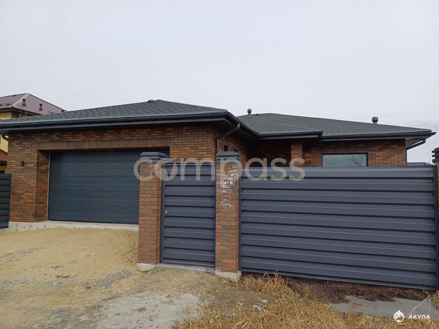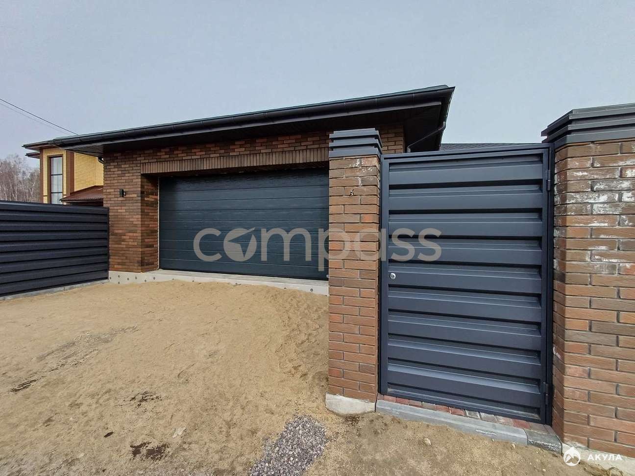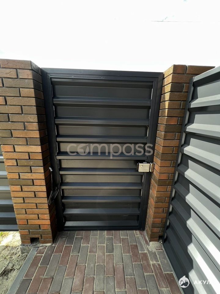 По периметру участок огорожен забором из профнастила с воротами и калиткой