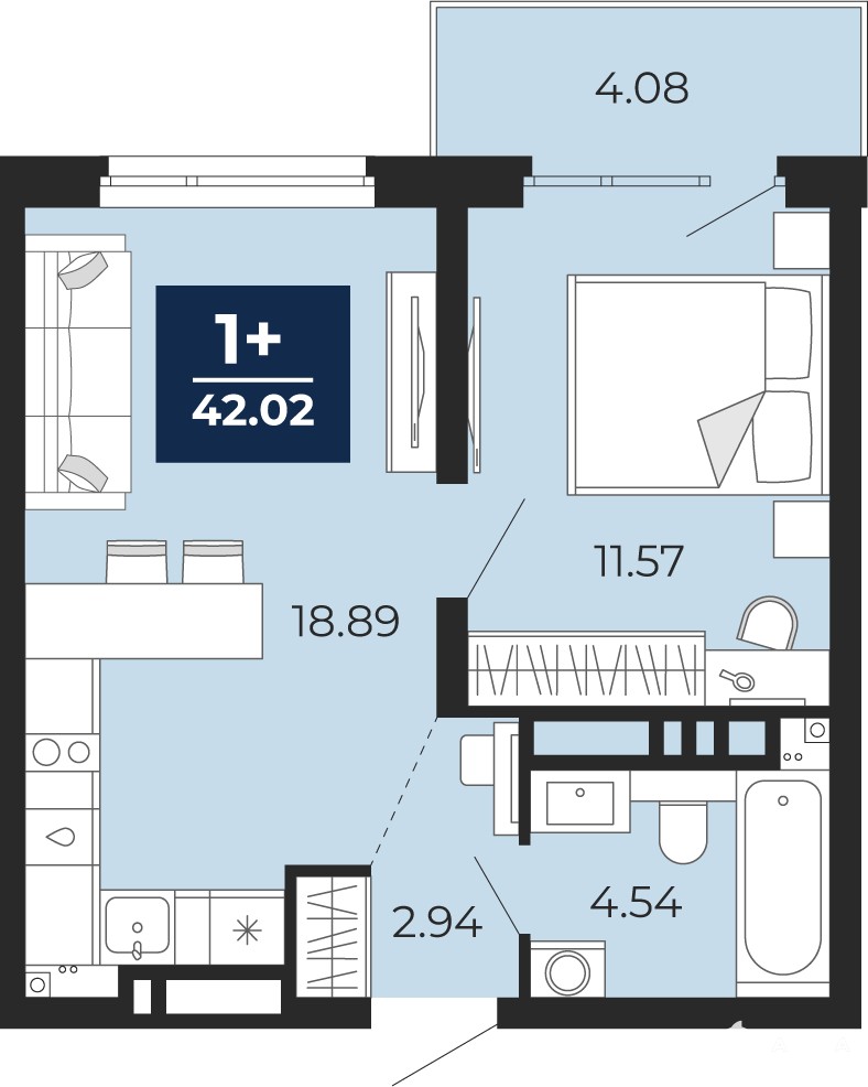 Просторная 1-комн. квартира с предчистовой отделкой в ЖК "Прео" на 6 этаже. Общая площадь: 42.02 кв.м. Высота потолков 2.7 м.