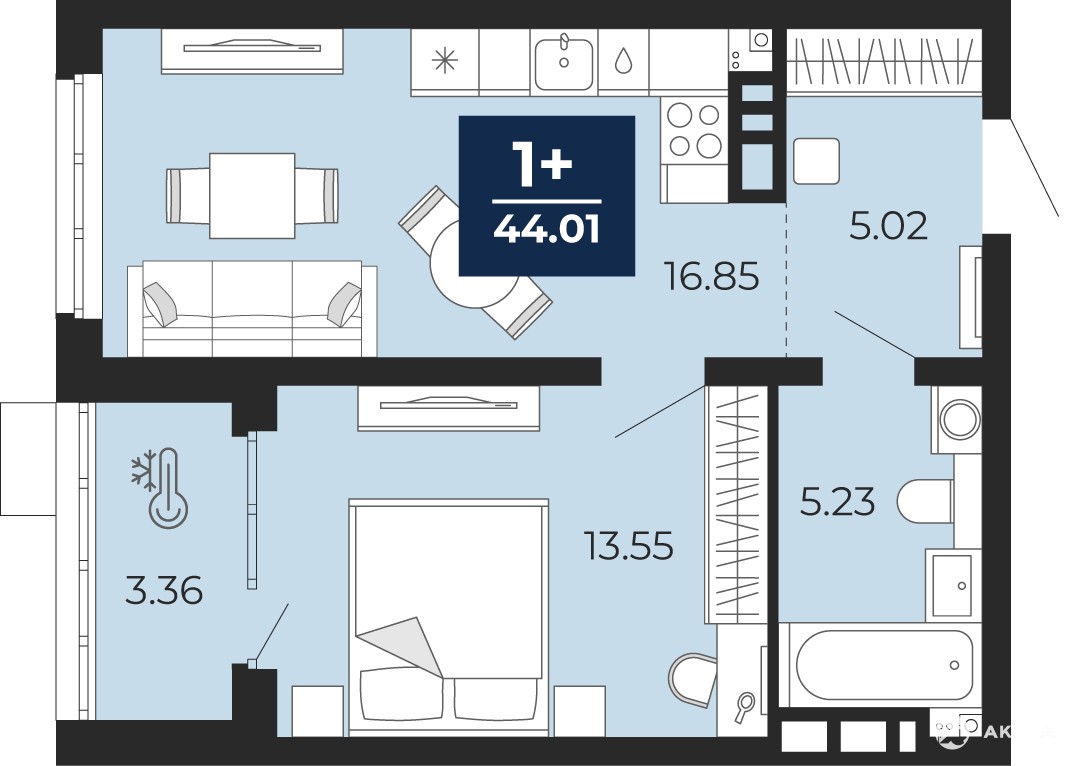 - 16.85 м²
