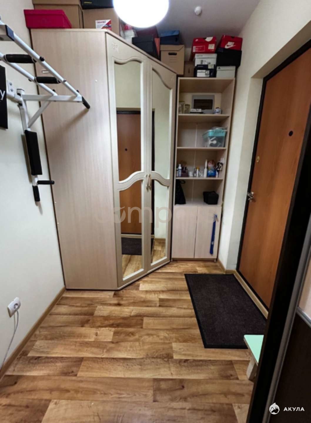 В Ванной комнате: бойлер, стиральная машинка. В коридоре: три шкафа.