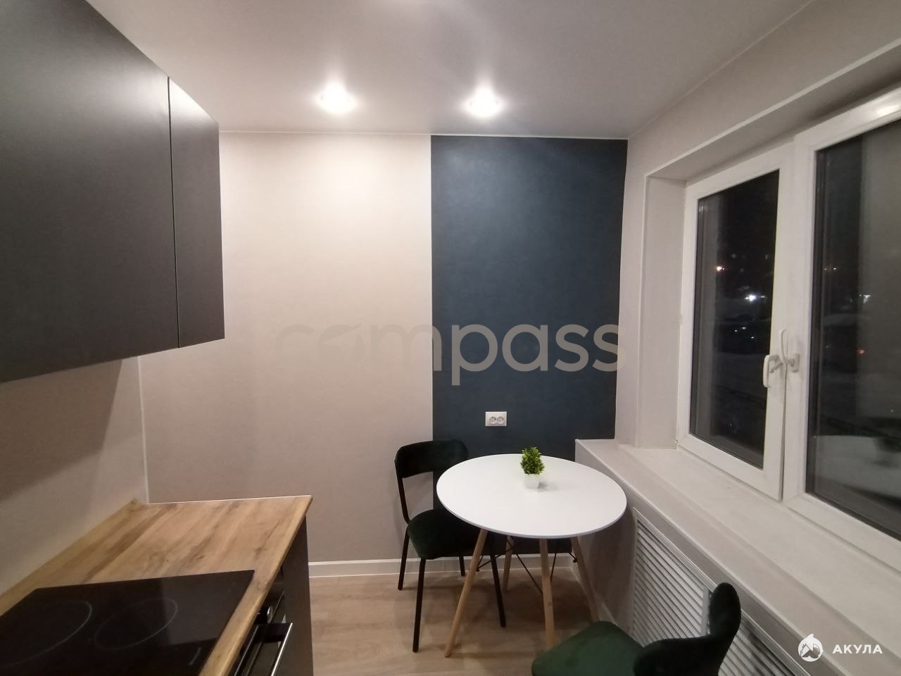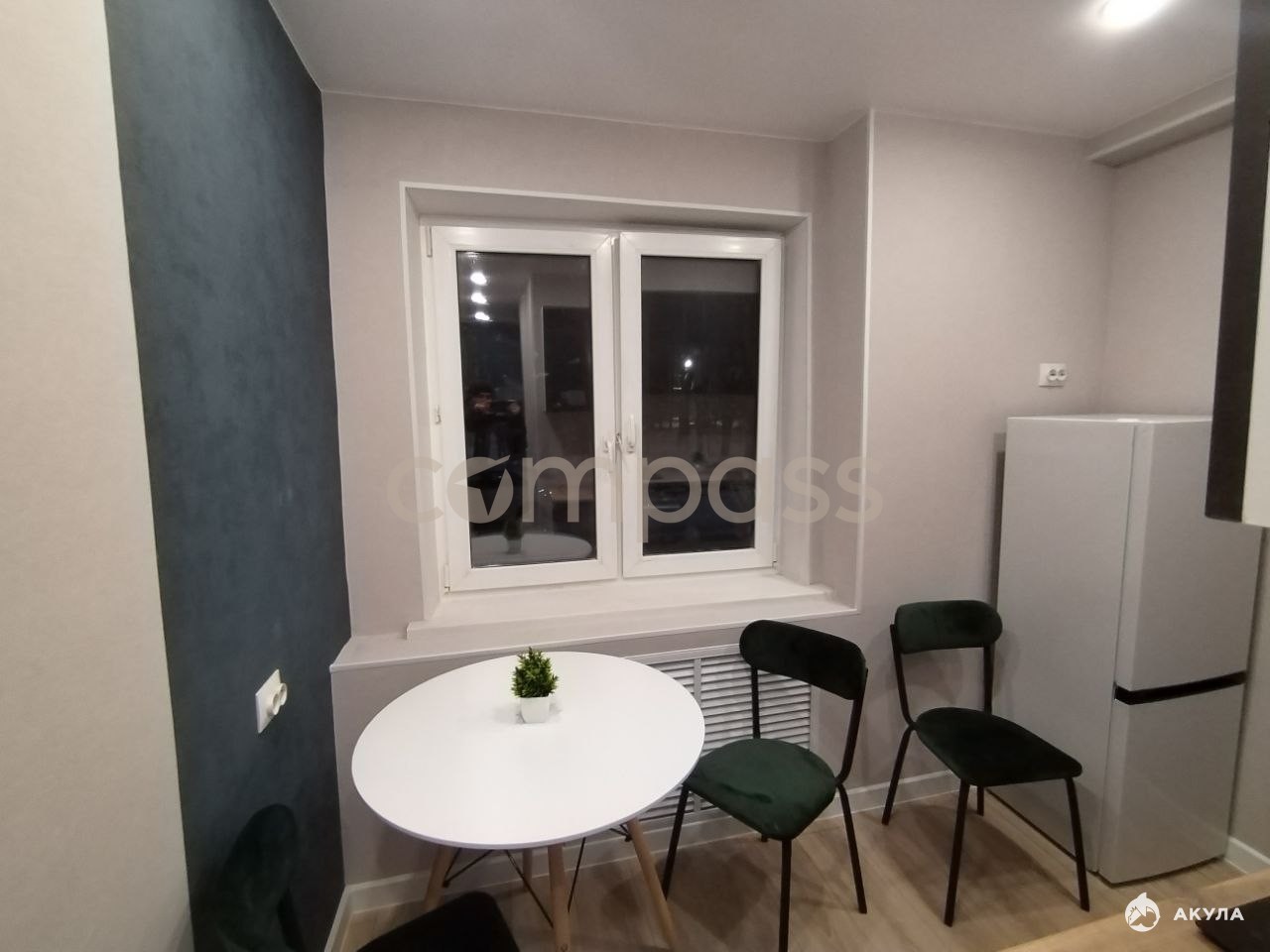 Выполнен современный ремонт из качественных материалов: на полу ламинат (выполнена стяжка), натяжные потолки с точечным освещением, пластиковые окна, санузел в плитке, обои спокойной цветовой гаммы.