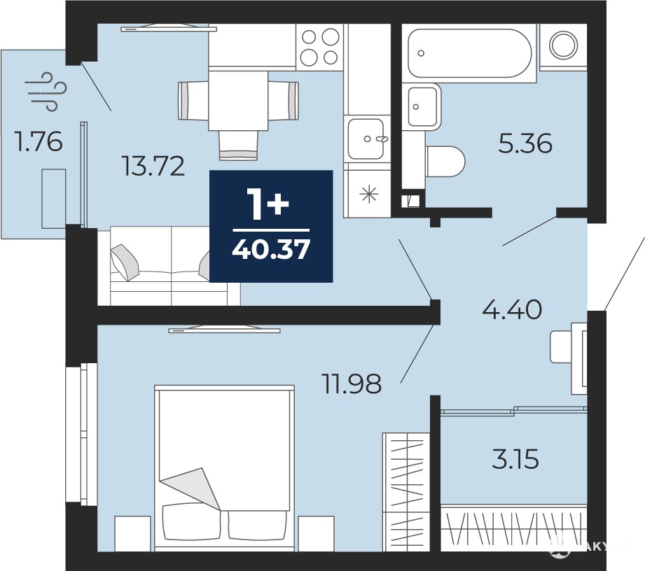 Просторная 1-комн. квартира с предчистовой отделкой в ЖК "Беринг" на 2 этаже. Общая площадь: 40.37 кв.м., жилая: 11.98 кв.м., площадь просторной кухни-столовой: 13.72 кв.м. Все окна выходят на одну сторону. В квартире один балкон, один совмещенный санузел. Высота потолков 2.72 м.