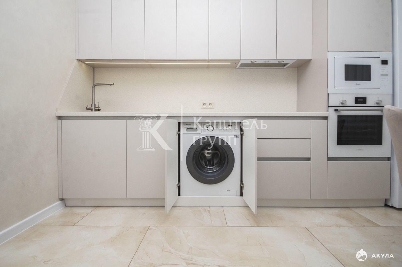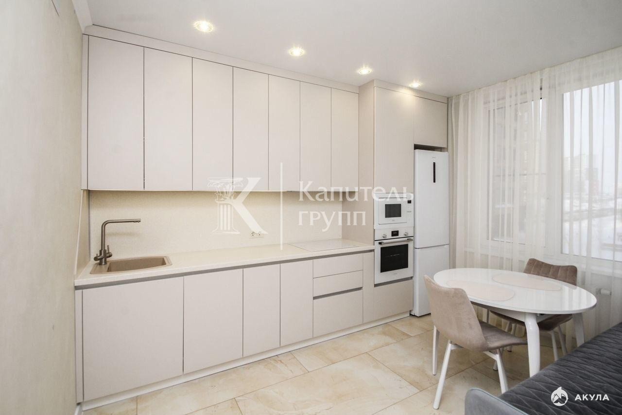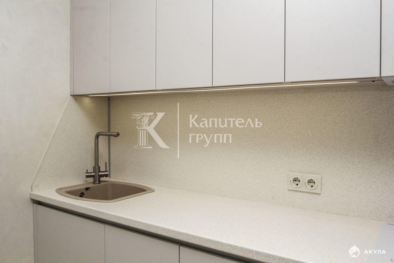 Выполнен ремонт светлых оттенков. Квартира не сдавалась, ремонт свежий, новый. На стенах кухни, частично в ванной комнате и полностью во всём коридоре нанесена декоративная штукатурка (шёлк) По на кухне и в коридоре из керамогранита. Бытовая техника и кухня установлены в октябре. На кухне установлен фильтр воды. Посудомоечная машина, стиральная машина. Смеситель Итальянского производства имеющий две фазы подачи воды.