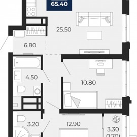 2-комн. квартира с предчистовой отделкой в ЖК "Айвазовский" на 20 этаже. Общая площадь: 67 кв.м., жилая: 23.7 кв.м., площадь просторной кухни-столовой: 25.5 кв.м. Комнаты изолированные, все окна выходят на одну сторону. В квартире одна лоджия, два совмещенных санузла. Высота потолков 2.72...
