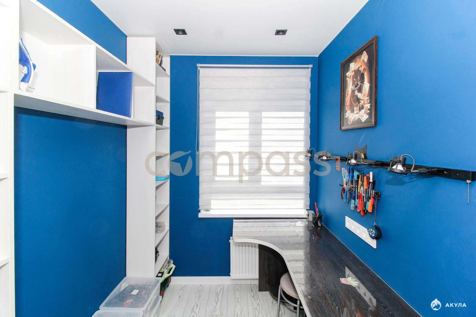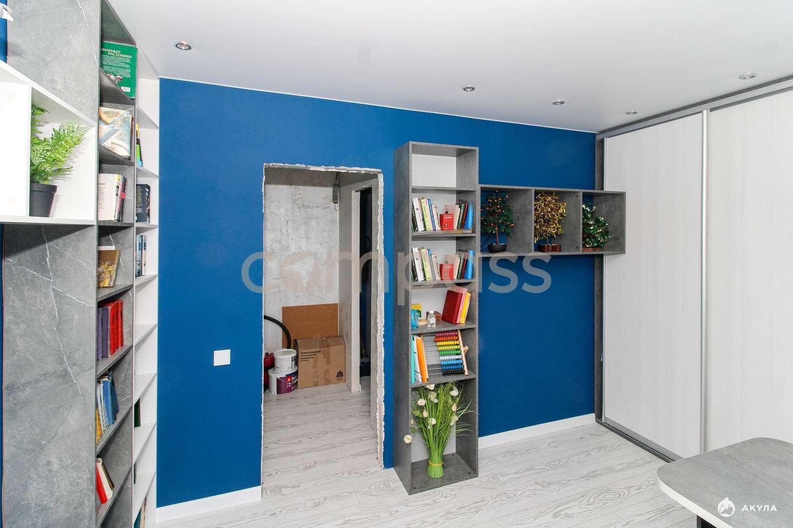 Выделено небольшое помещение с ремонтом, которое можно использовать для работы или сделать там удобную гардеробную.