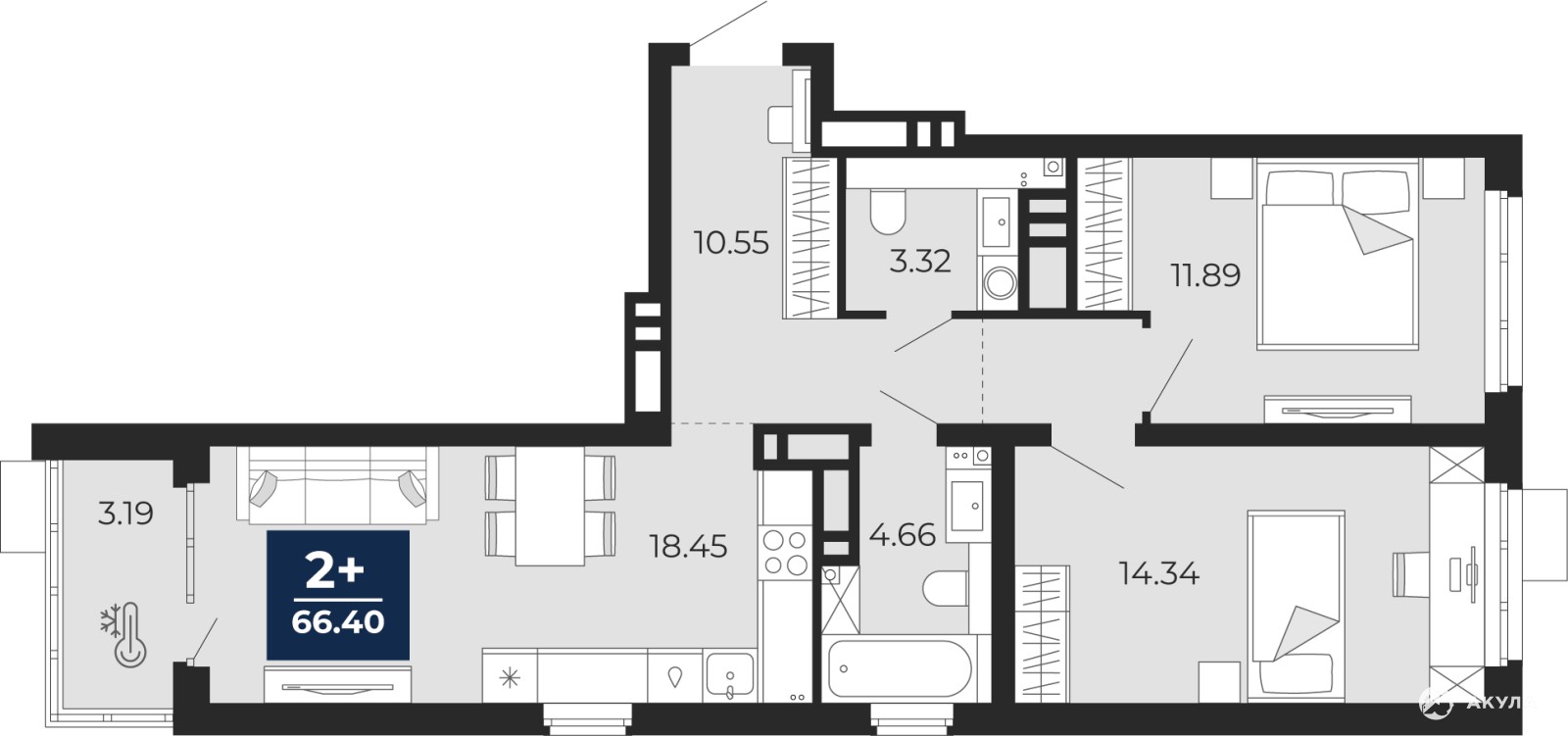 - 18.45 м²