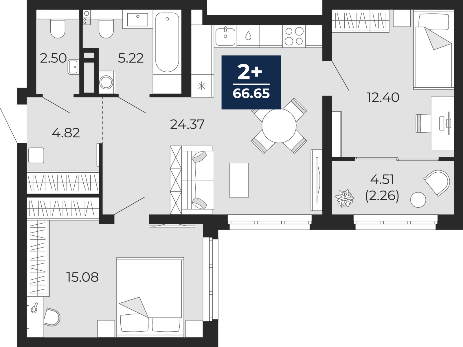 2-комн. квартира с предчистовой отделкой в ЖК "Беринг" на 21 этаже. Общая площадь: 68.9 кв.м. Высота потолков 2.75 м.