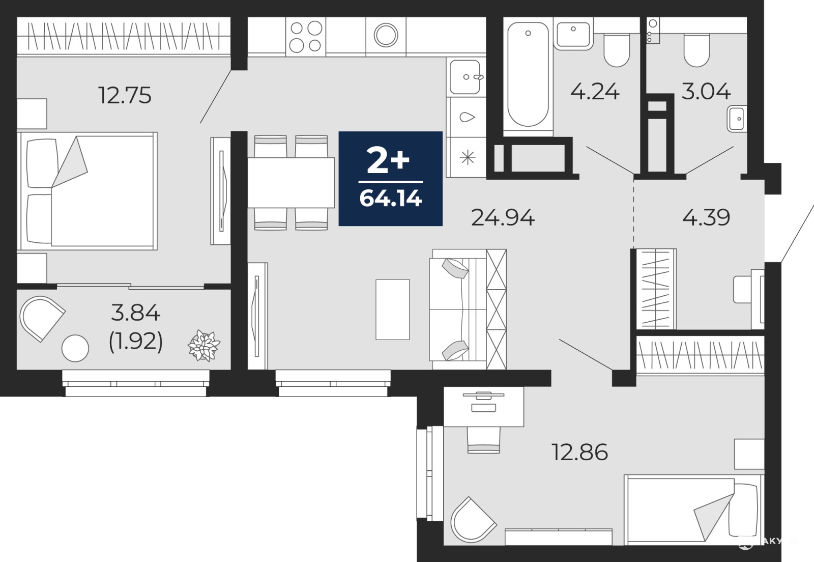 Продается двухкомнатная квартира от застройщика с предчистовой отделкой в ЖК "Беринг" на 22 этаже. Общая площадь: 66.06 кв.м., жилая: 25.61 кв.м., площадь просторной кухни-столовой: 24.94 кв.м. Угловая квартира, идеально подойдет любителям тишины и панорамных видов. В квартире одна лоджия, один совмещенный и один раздельный санузел. Высота потолков 2.75 м.