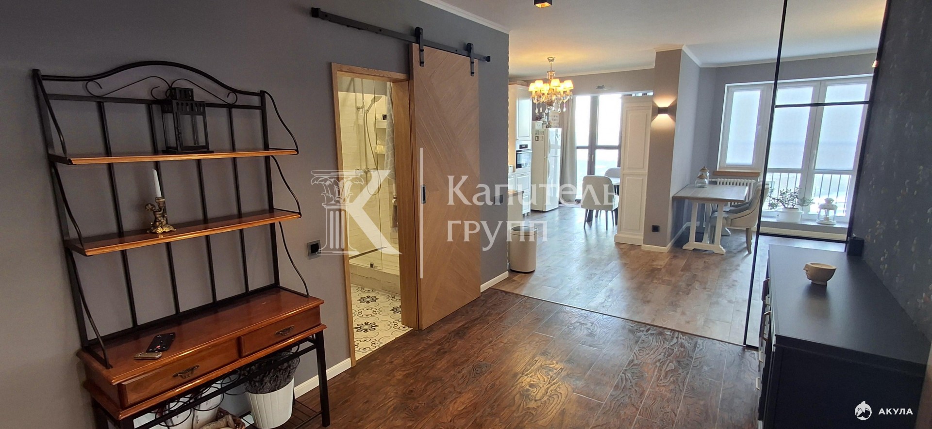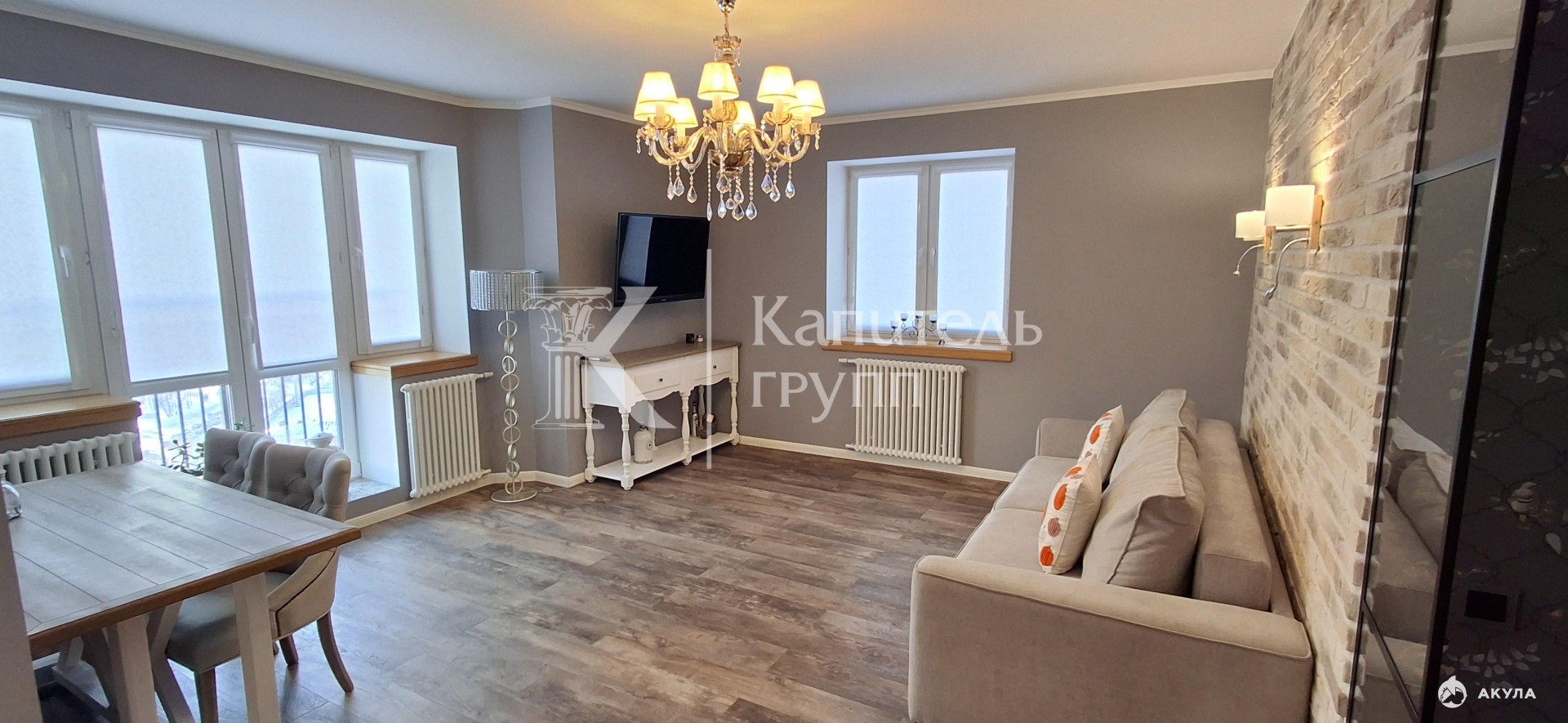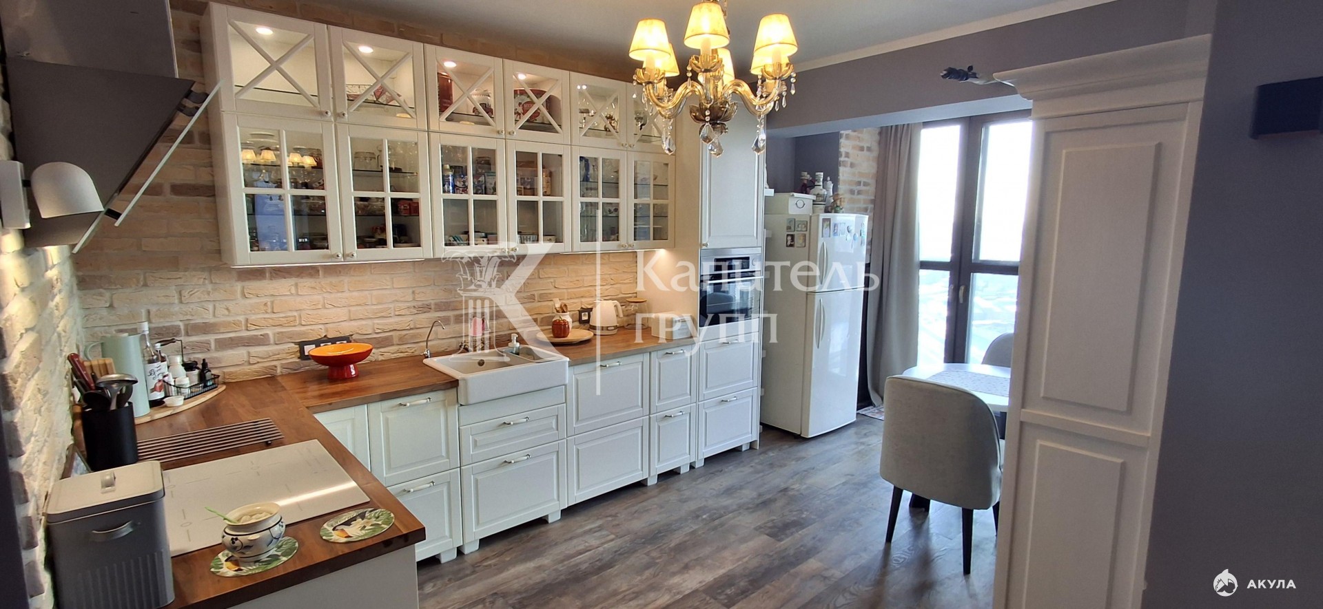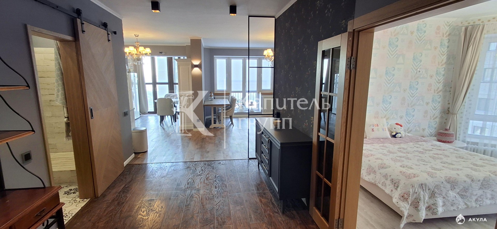 Просторная кухня-гостиная, зона отдыха у панорамного окна. Две изолированные спальни, гардеробная, санузел с душевой кабиной.