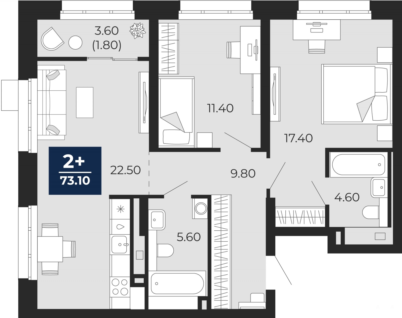 Продается 2-комн. квартира от застройщика с предчистовой отделкой в ЖК "Айвазовский City" на 2 этаже. Общая площадь: 73.1 кв.м., жилая: 28.8 кв.м., площадь просторной кухни-столовой: 22.5 кв.м. Угловая квартира, окна oбecпeчивaют paвнoмepнoe ocвeщeниe в тeчeниe дня. В квартире одна лоджия, два совмещенных санузла. Высота потолков 2.72 м.
