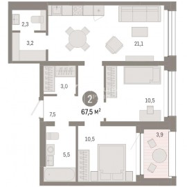 69 м² , 2-комнатную квартиру 15 ноября 2025