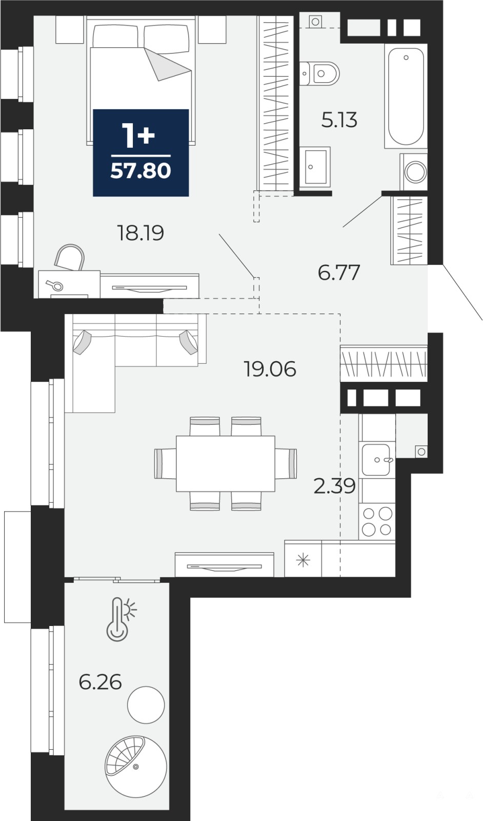 Просторная двухкомнатная квартира с европланировкой и предчистовой отделкой в ЖК "Айвазовский" на 6 этаже. Общая площадь: 57.8 кв.м., жилая: 37.25 кв.м., суммарная площадь гостиной-столовой с кухонной зоной: 21.45 кв.м. Европланировка, в просторной кухне-гостиной удобно как готовить, так и отдыхать. Комнаты изолированные, все окна выходят на одну сторону. В квартире одна лоджия, один совмещенный санузел. Высота потолков 2.7 м.