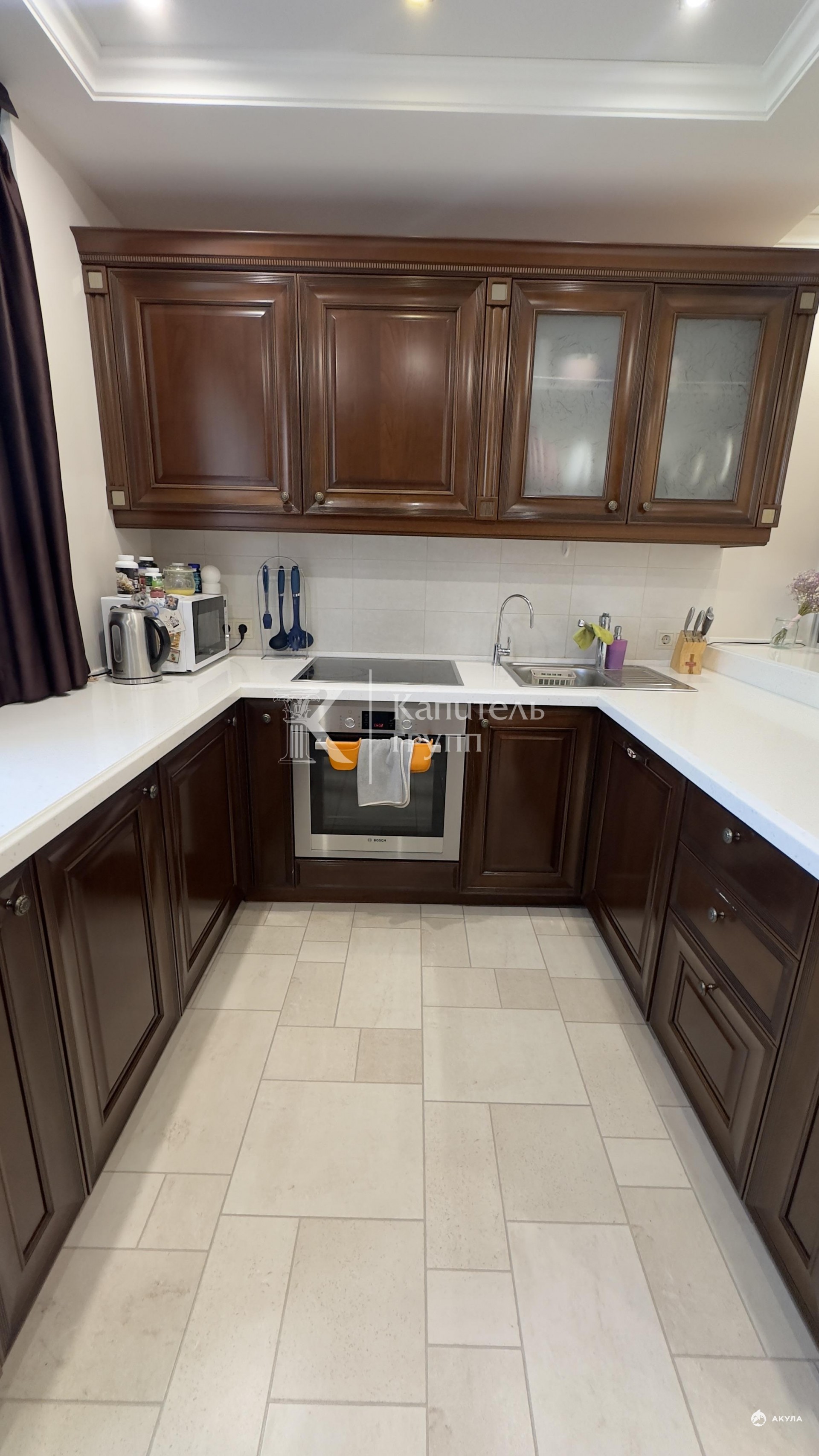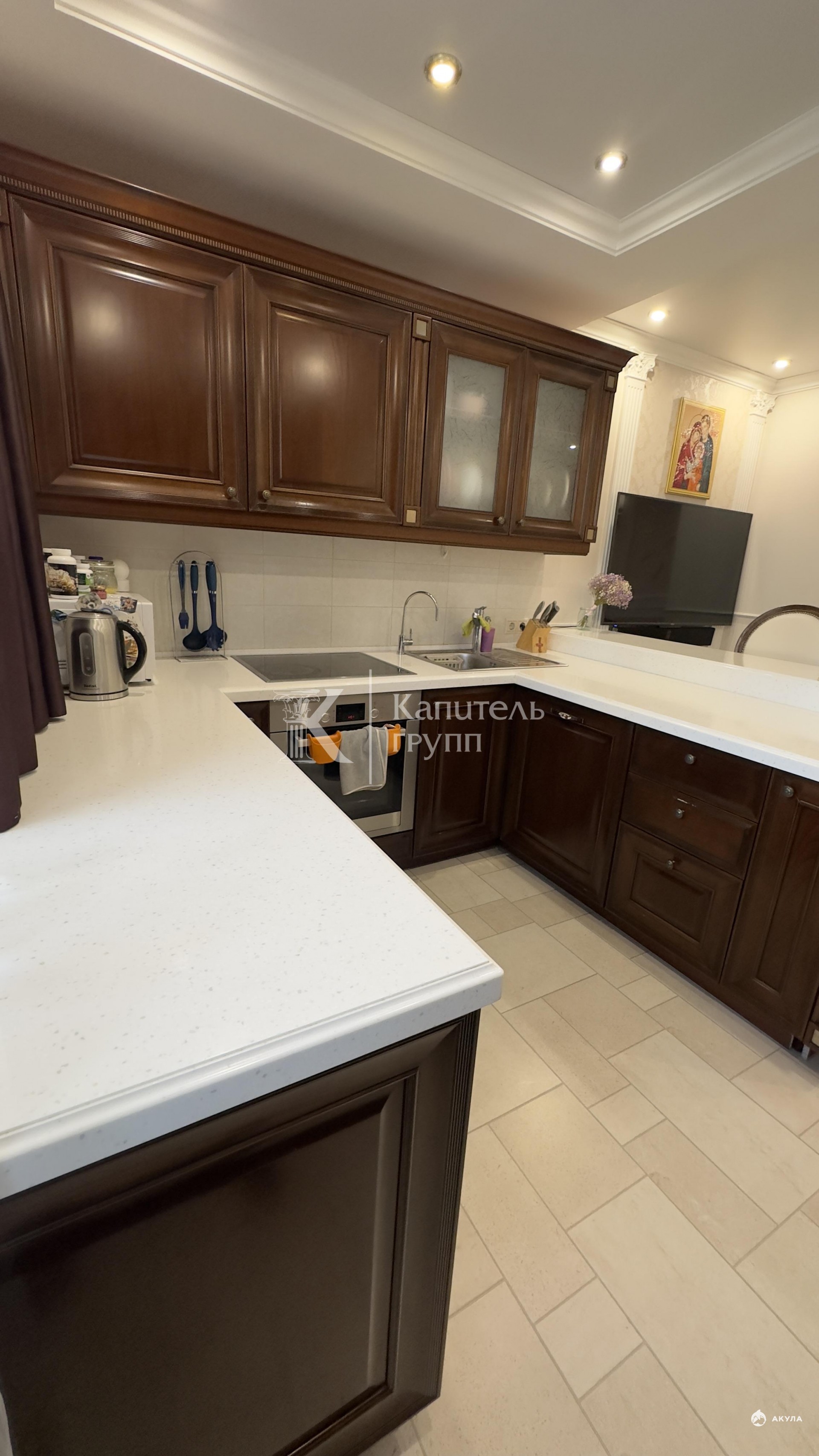 Во всей квартире стоят межкомнатные двери. Кухонный гарнитур с итальянскими деревянными фасадами, каменной столешницей. Качественная встроенная бытовая техника, встроенный холодильник.
