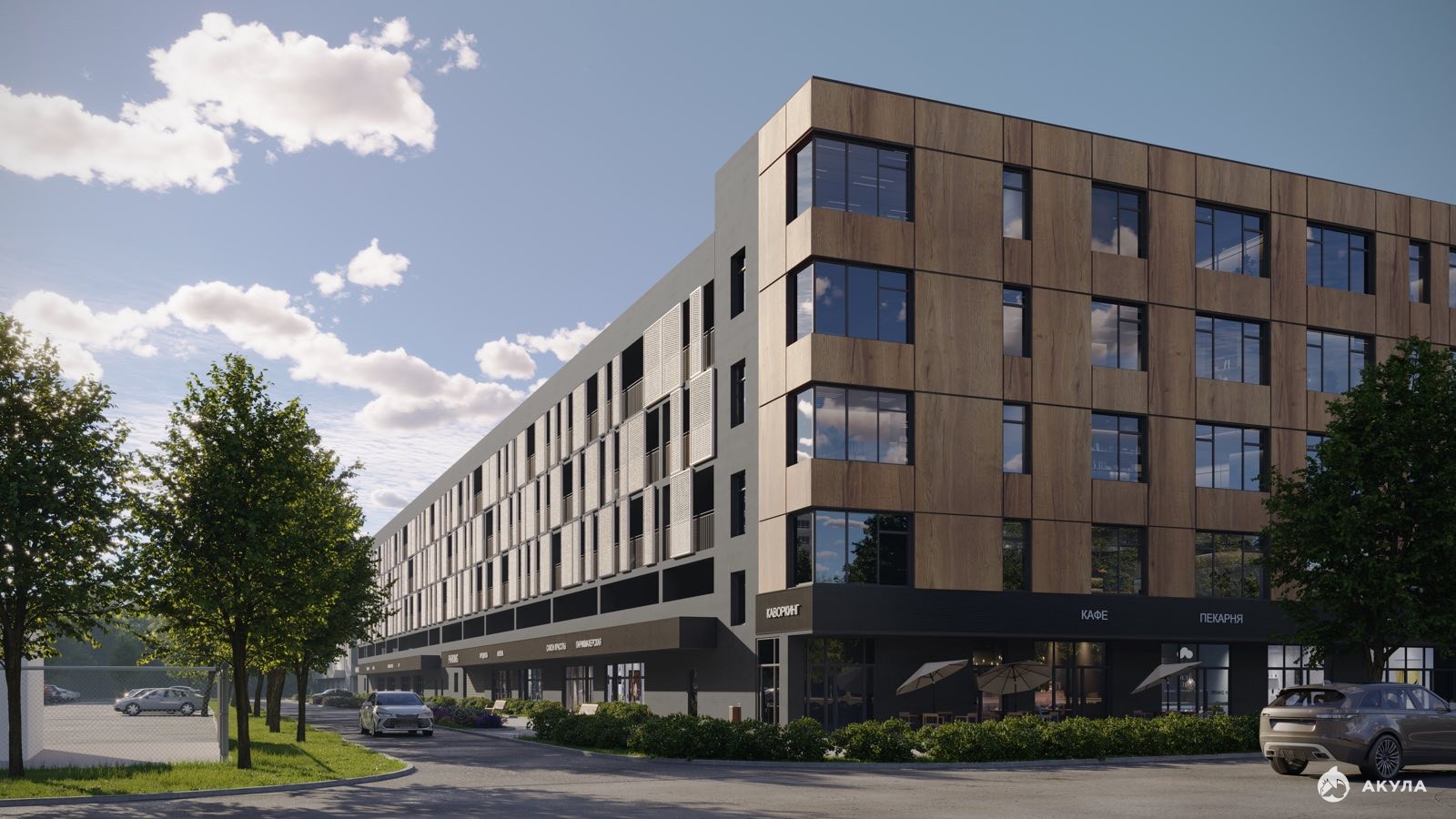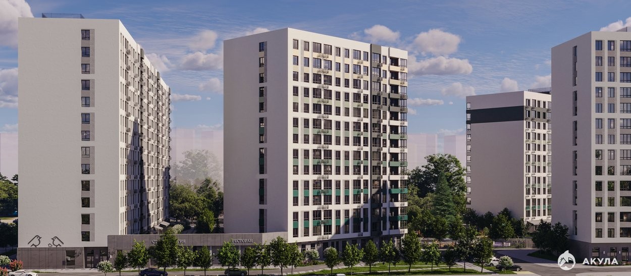«Гринвуд» в переводе с английского означает «зеленый лес». Это отражает концепцию ЖК: микрорайон с собственным лесопарком. Архитекторы спроектировали микрорайон по принципу «зеленого каркаса».