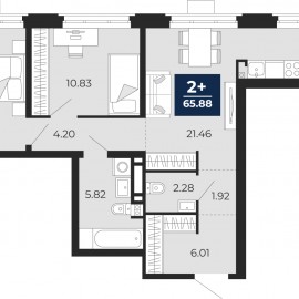 Продается 2-комн. квартира с предчистовой отделкой в ЖК "Айвазовский" на 11 этаже. Общая площадь: 65.88 кв.м., жилая: 24.19 кв.м., площадь просторной кухни-столовой: 21.46 кв.м. Угловая квартира, идеально подойдет любителям тишины и панорамных видов. В квартире один совмещенный и один...