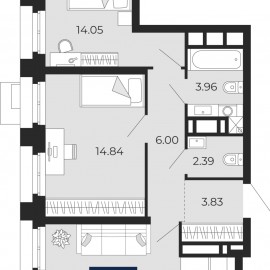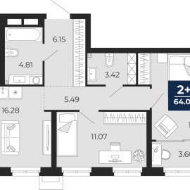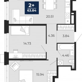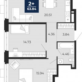 Двухкомнатная квартира с предчистовой отделкой в ЖК "Айвазовский" на 2 этаже. Общая площадь: 63.84 кв.м., жилая: 30.67 кв.м., площадь просторной кухни-столовой: 20.51 кв.м. Комнаты изолированные, все окна выходят на одну сторону. В квартире один совмещенный санузел. Высота потолков 2.7...