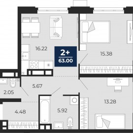 Продается двухкомнатная квартира с предчистовой отделкой в ЖК "Айвазовский" на 2 этаже. Общая площадь: 63 кв.м., жилая: 28.66 кв.м., площадь просторной кухни-столовой: 16.22 кв.м. Квартира угловая, очень светлая, естественная вентиляция при открытии окон. В квартире один совмещенный...