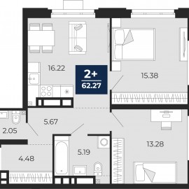 Двухкомнатная квартира от застройщика с предчистовой отделкой в ЖК "Айвазовский" на 16 этаже. Общая площадь: 62.27 кв.м., жилая: 28.66 кв.м., площадь просторной кухни-столовой: 16.22 кв.м. Квартира угловая, очень светлая, естественная вентиляция при открытии окон. В квартире один...