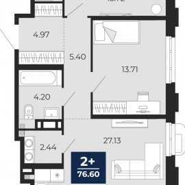 Двухкомнатная квартира с предчистовой отделкой в ЖК "Айвазовский" на 18 этаже. Общая площадь: 76.2 кв.м. Высота потолков 2.7 м. Дом монолитный, многоподъездный, переменной этажности, от 14 до 24 этажей. Квартира находится во 2-й секции высотой 18 этажей в корпусе ГП-8. На этаже 5...