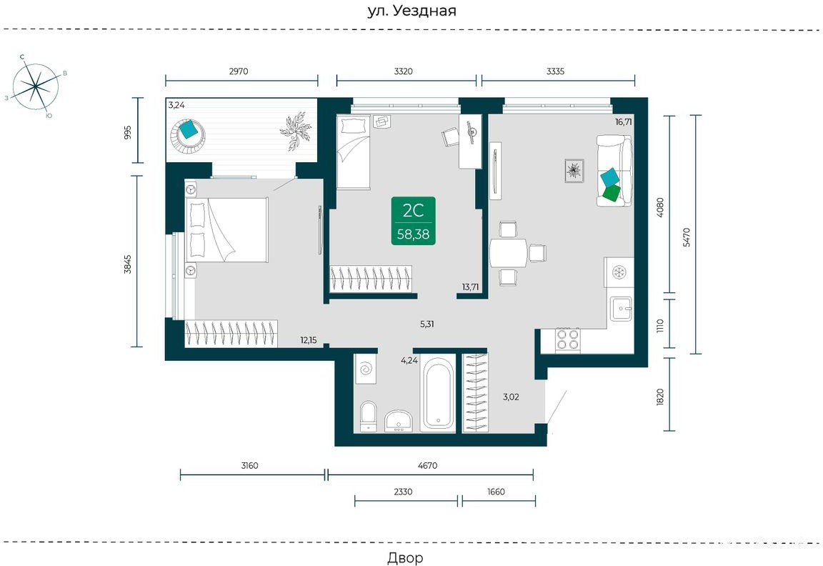 Продается 2-комн. квартира в ЖК "Уездные кварталы" на 8 этаже. Квартира без отделки, после оформления собственности можно делать ремонт. Общая площадь: 58.38 кв.м., жилая: 25.96 кв.м., площадь просторной кухни-столовой: 16.7 кв.м. Квартира угловая, идеально подойдет любителям тишины и панорамных видов. В квартире одна лоджия, один совмещенный санузел. Высота потолков 2.7 м.