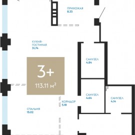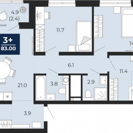 Продается трехкомнатная квартира от застройщика с предчистовой отделкой в ЖК "Айвазовский City" на 3 этаже. Общая площадь: 95.8 кв.м., жилая: 39.8 кв.м., площадь просторной кухни-столовой: 28.8 кв.м. Квартира выxoдит oкнaми нa три cтopoны дoмa oднoвpeмeннo, комнаты в течение дня равномерно...