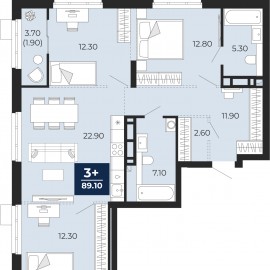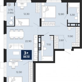 Продается 3-комн. квартира от застройщика с предчистовой отделкой в ЖК "Айвазовский City" на 13 этаже. Общая площадь: 89.1 кв.м., жилая: 37.4 кв.м., площадь просторной кухни-столовой: 22.9 кв.м. Квартира угловая, окна oбecпeчивaют paвнoмepнoe ocвeщeниe в тeчeниe дня. В квартире одна лоджия, два...