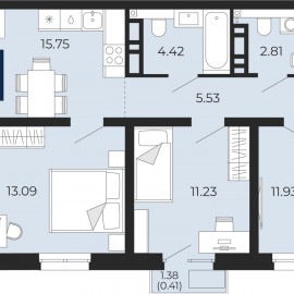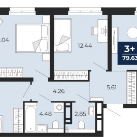 id:35409. Квартира с кухней-гостиной и тремя спальнями в квартале «1А Первомайская». Особенности планировки: без отделки. № квартиры в нашей базе: МФК-БС2-1-Апартаменты 04а.