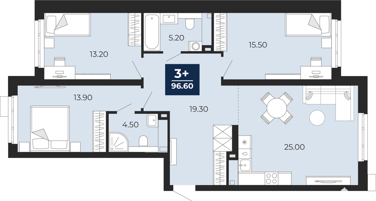 Продается 3-комн. квартира с предчистовой отделкой в ЖК "Айвазовский" на 2 этаже. Общая площадь: 96.6 кв.м., жилая: 42.6 кв.м., площадь просторной кухни-столовой: 25 кв.м. Квартира - распашонка, без проходных комнат, окна выходят на paзные стороны дома. В квартире два совмещенных санузла. Высота потолков 2.7 м.