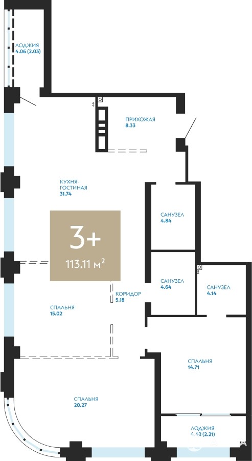 3-комн. квартира от застройщика в ЖК "Айвазовский City" на 2 этаже. Квартира без отделки, новый собственник может сделать ремонт по индивидуальному дизайн-проекту. Общая площадь: 113.11 кв.м., жилая: 50 кв.м., площадь просторной кухни-столовой: 31.74 кв.м. Квартира угловая, идеально подойдет любителям тишины и панорамных видов. В квартире две лоджии, три совмещенных санузла. Высота потолков 2.72 м.
