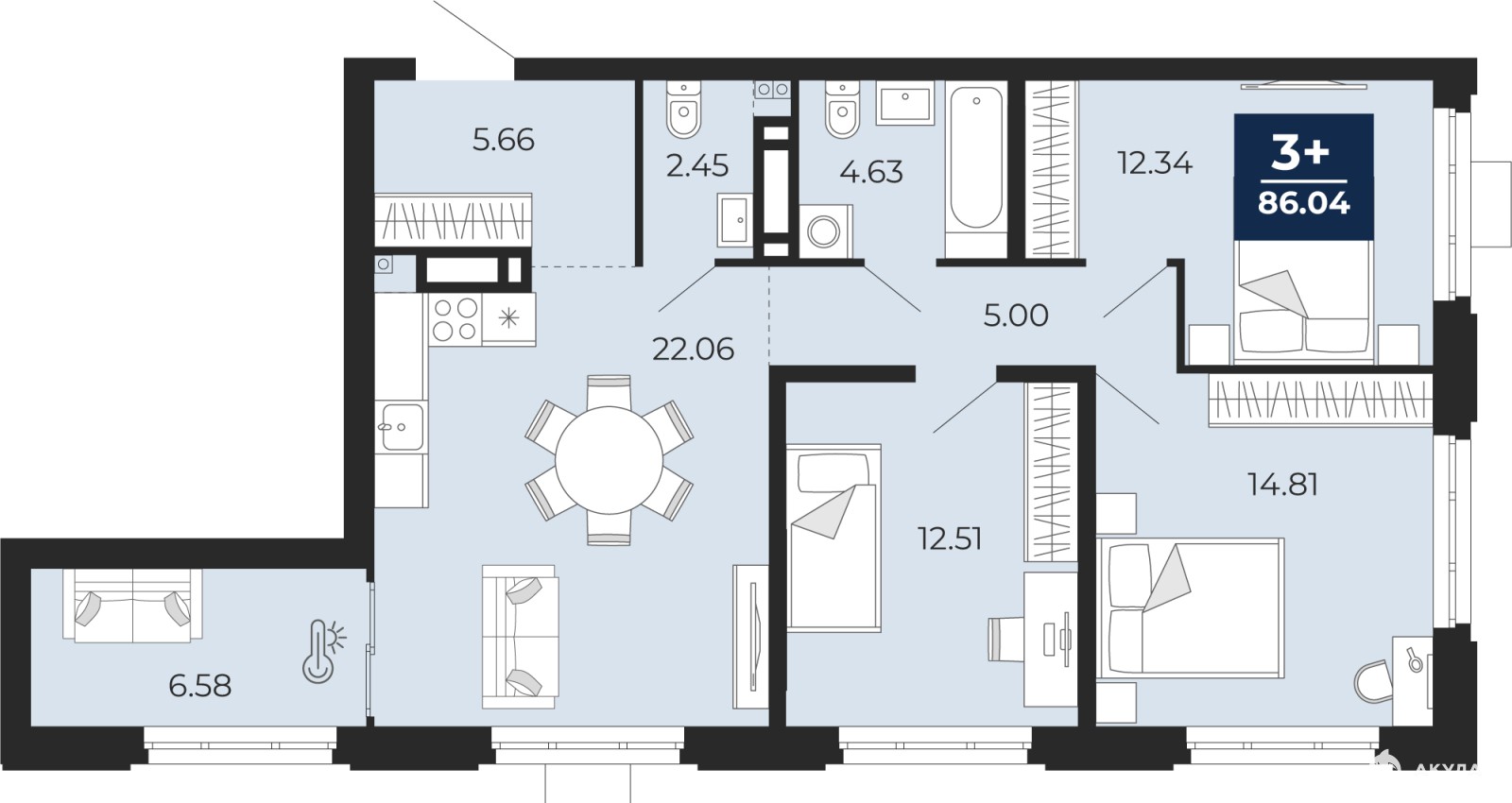 - 22.06 м²