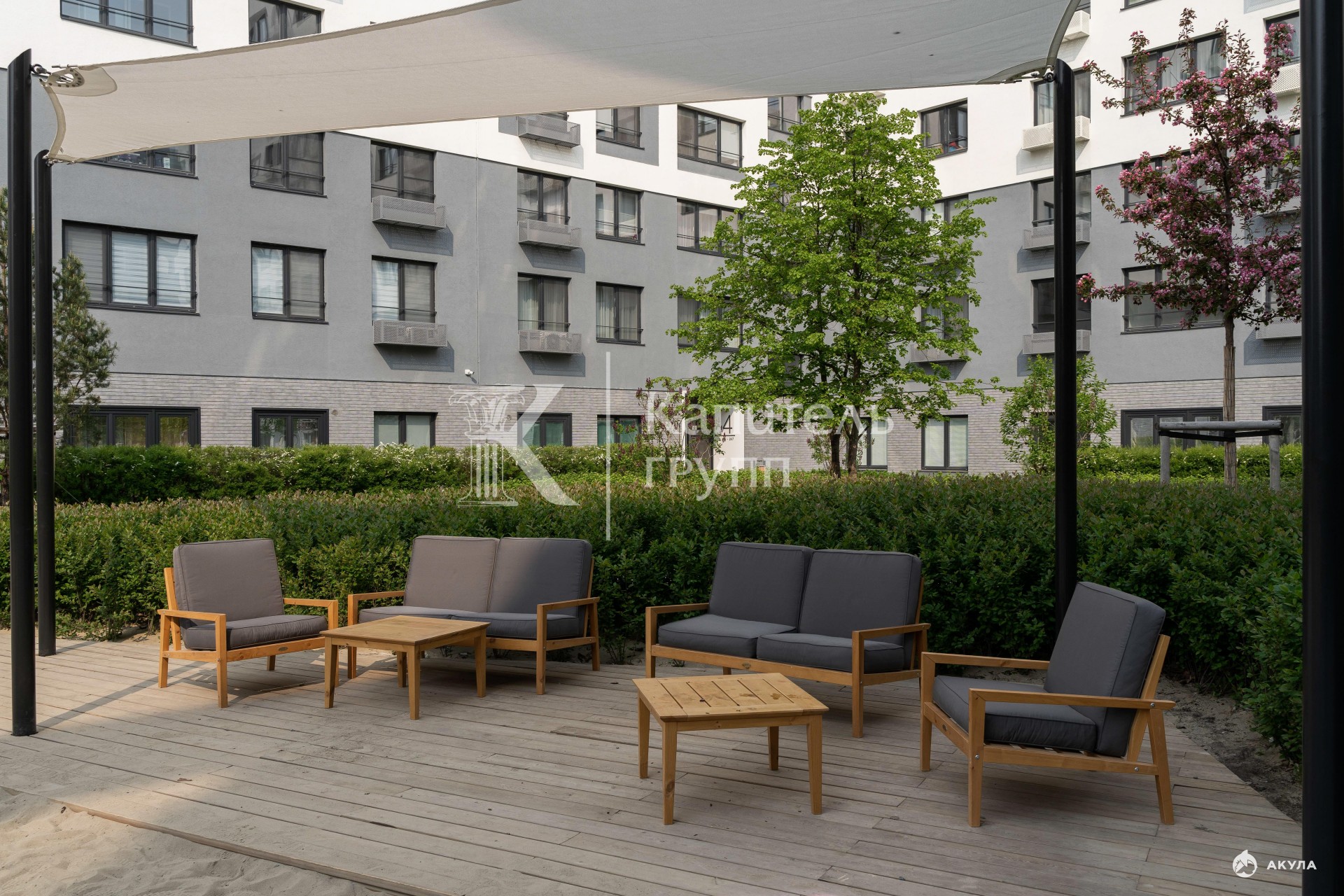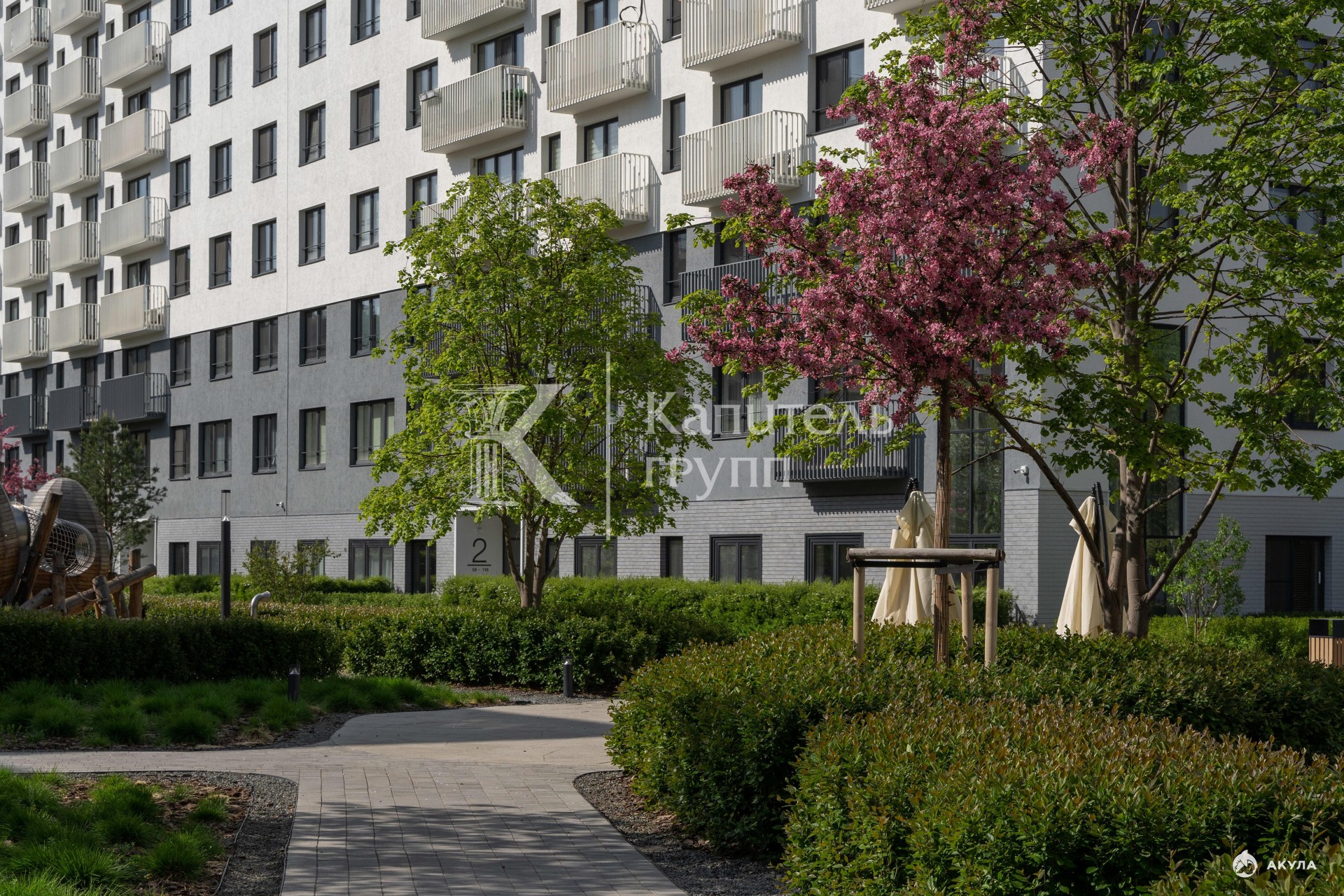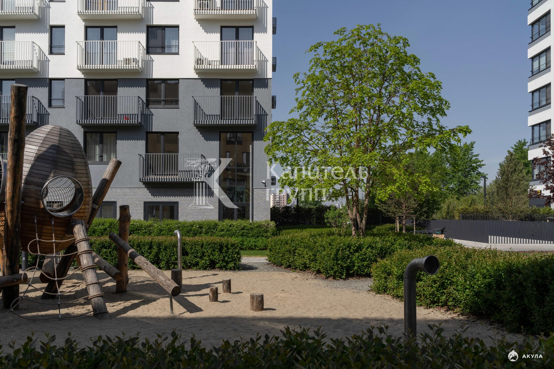 Дворы закрыты естественным способом, внутри не слышно шума города. На территории расположены детские и спортивные площадки, зоны для отдыха и прогулок, фонтан с подсветкой.